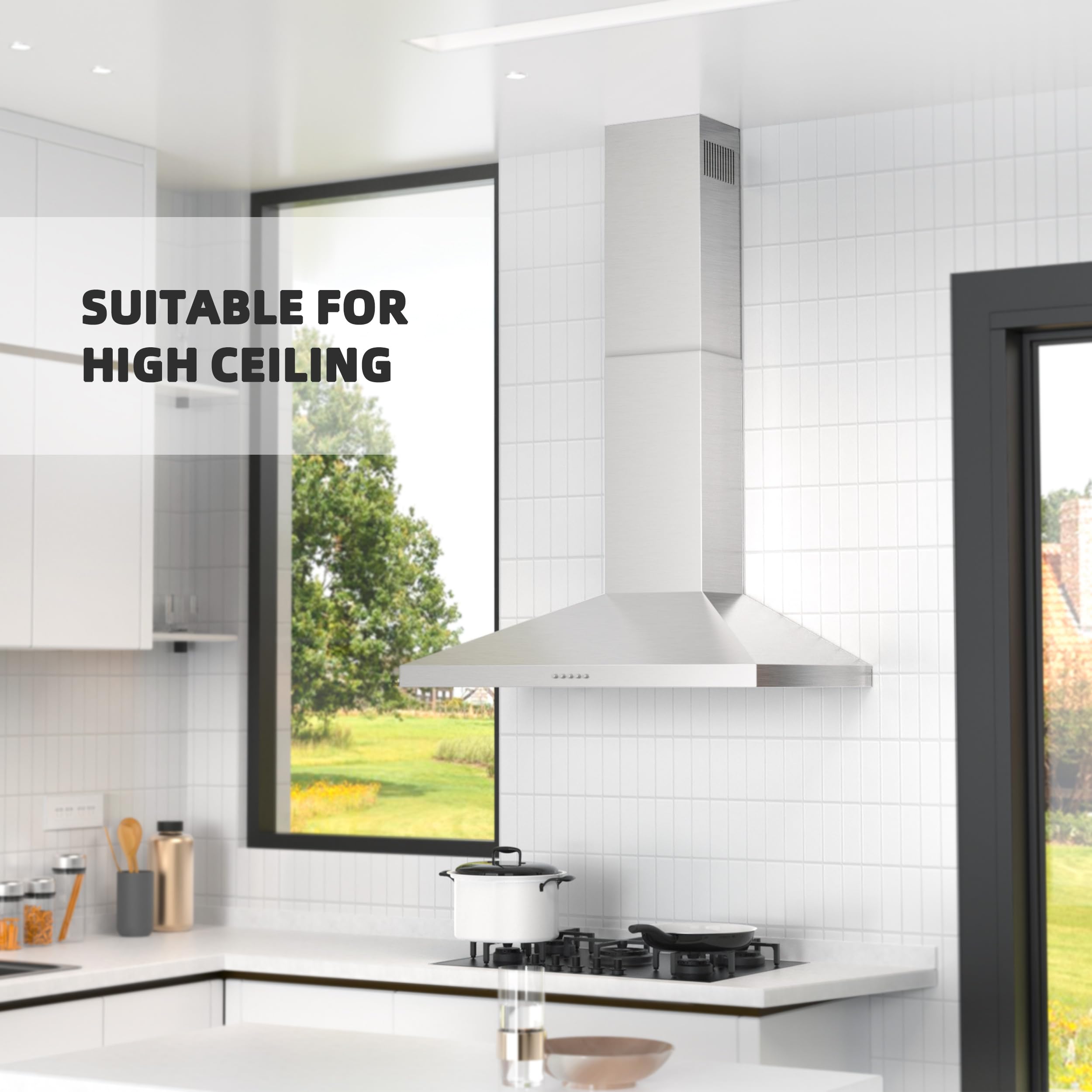 PREMIUM CHIMNEY: This adjustiable range hood chimney extension is made of 430 grade brushed stainless steel, which is resistant to high temperature, rust and corrosion. At the same time, it is easy to clean by hand