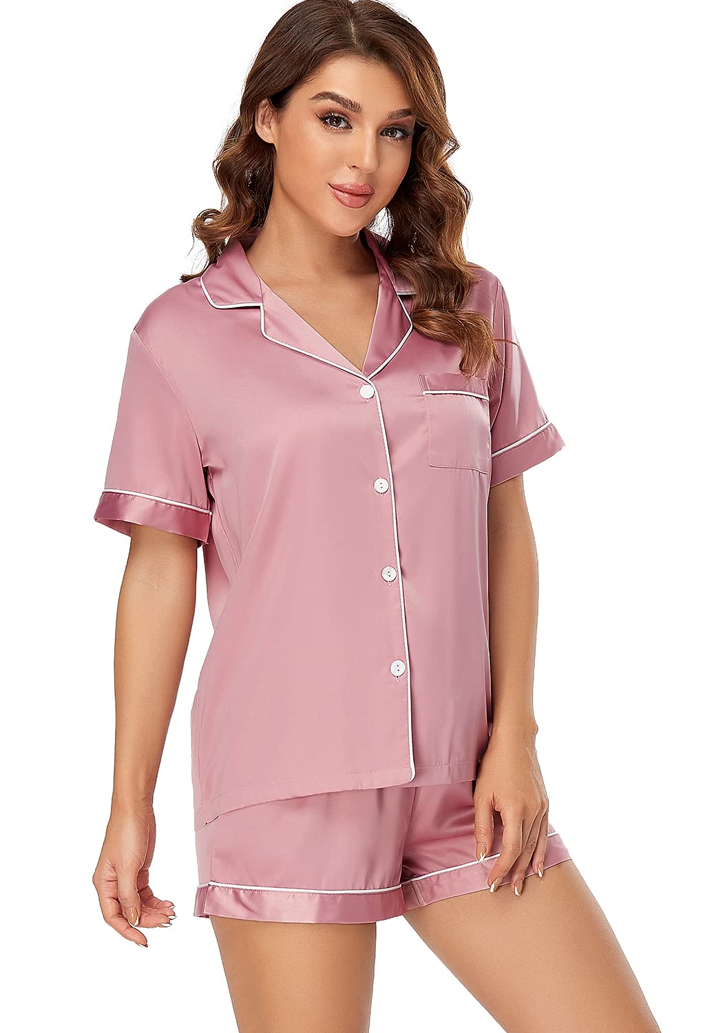 COMFORTABLE FABRIC: Made of high quality silk-like satin fabric, this pajama set is soft and lightweight, perfect for sleeping, lounging, or daily casual wear.