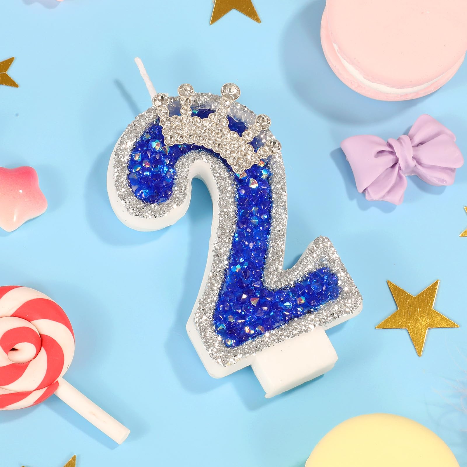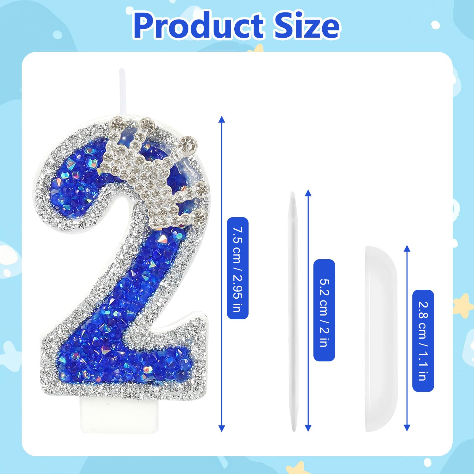 【Pretty Appearance】This blue number candle is inlaid with sparkling sequins and delicate crown ornaments, beautifully made, make your cake more beautiful.