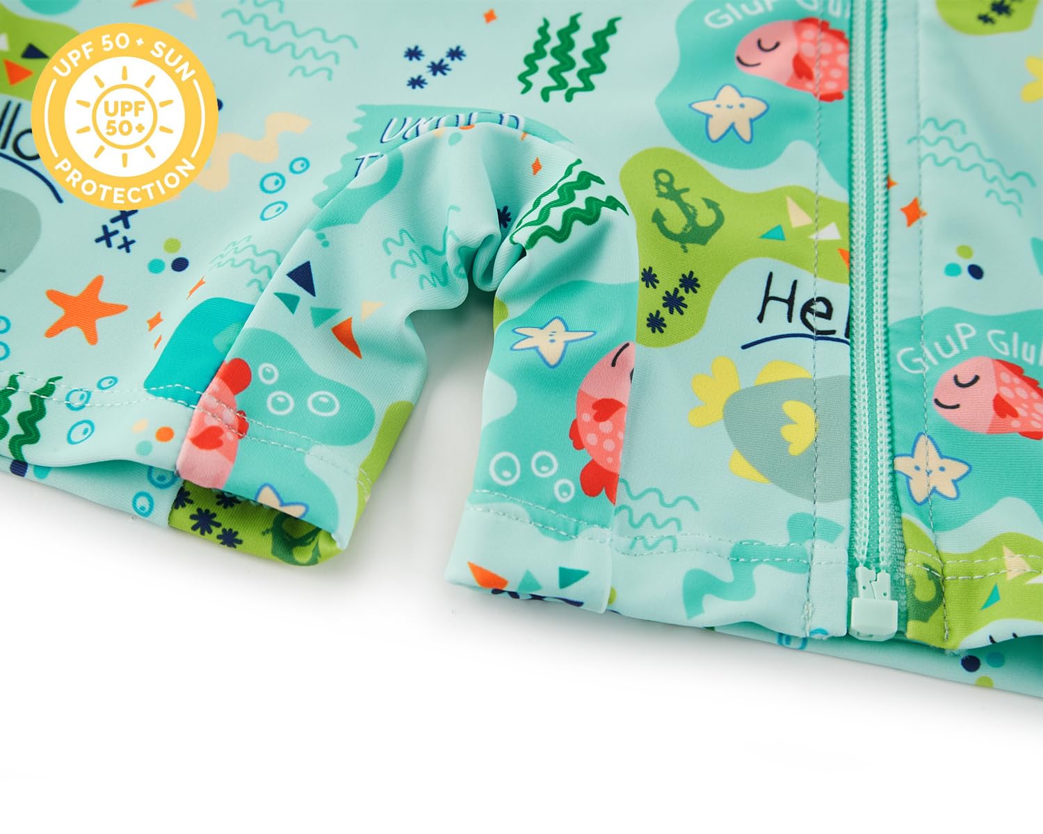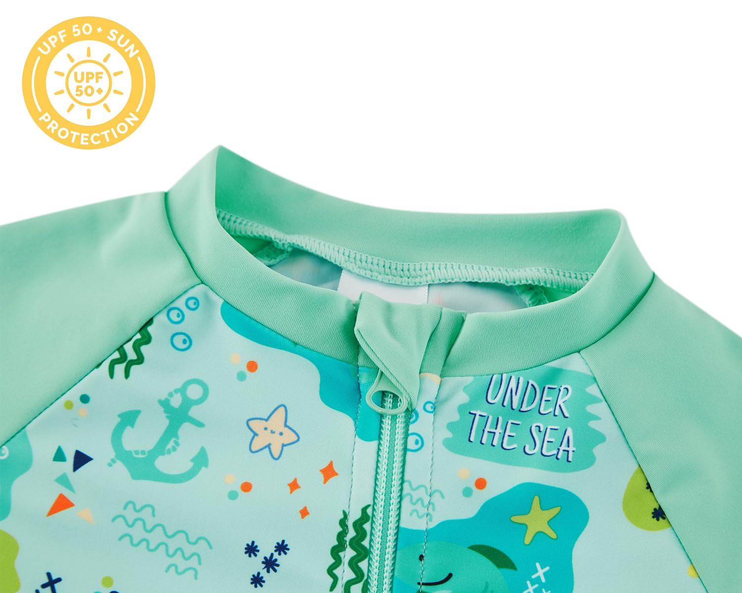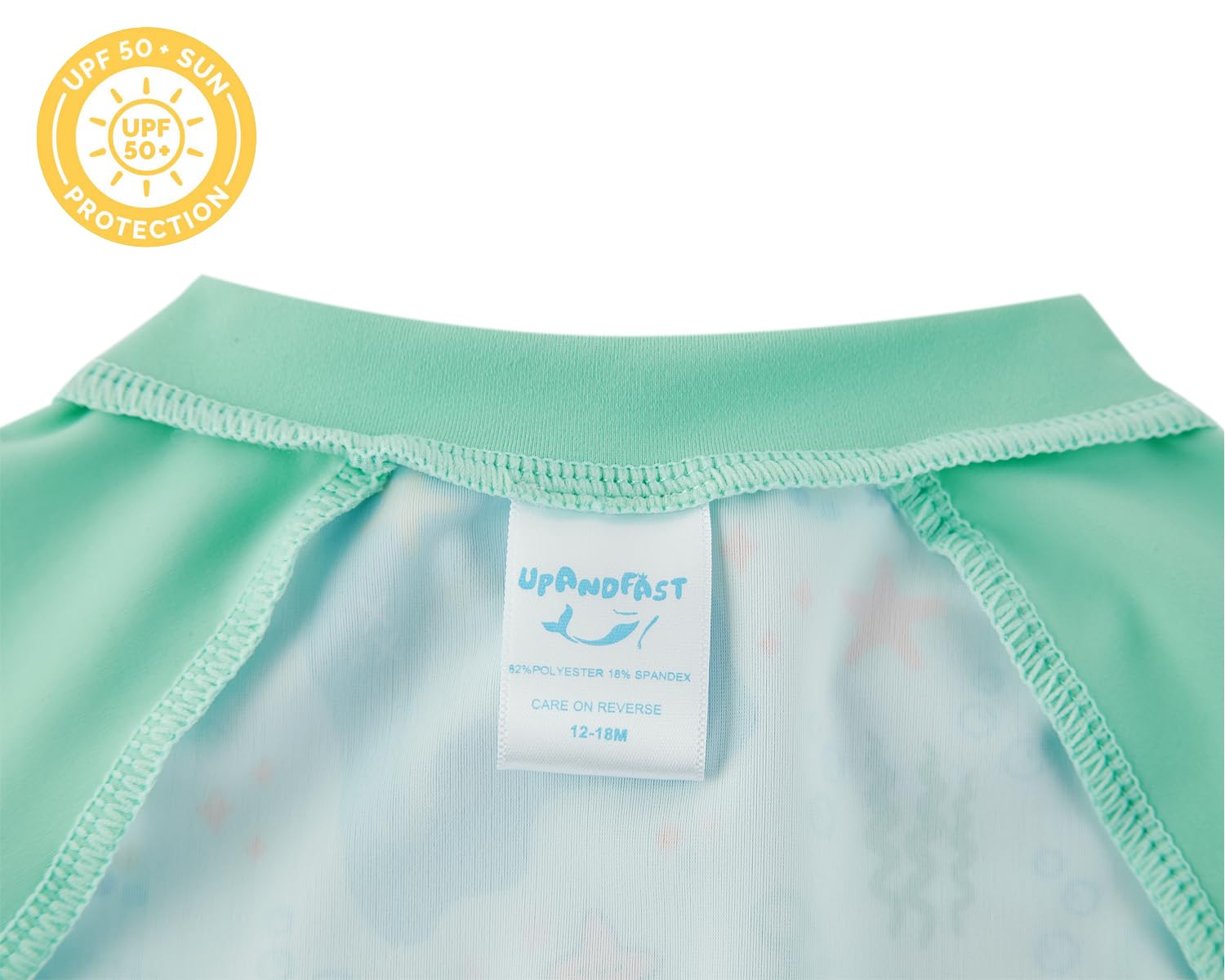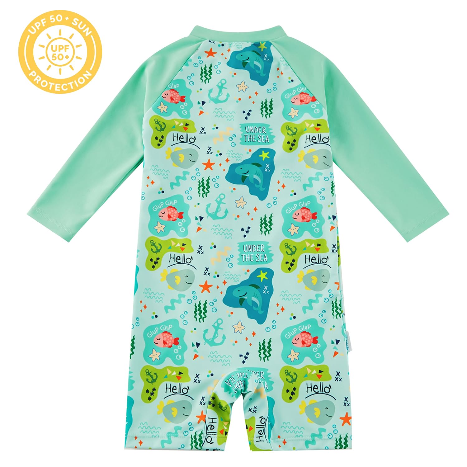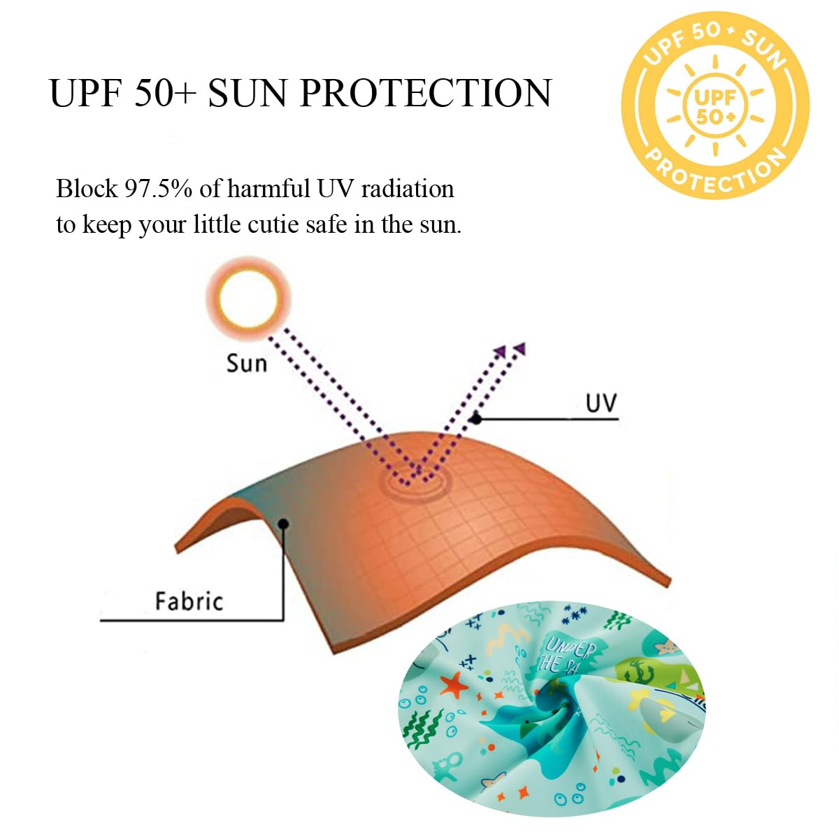 UPF 50+ SUN PROTECTION: This baby swimsuit is rated UPF 50+ sun protection, which blocks out 98% of the sun's harsh UVA and UVB rays. You'll have peace of mind knowing baby's delicate skin is protected from sunburns