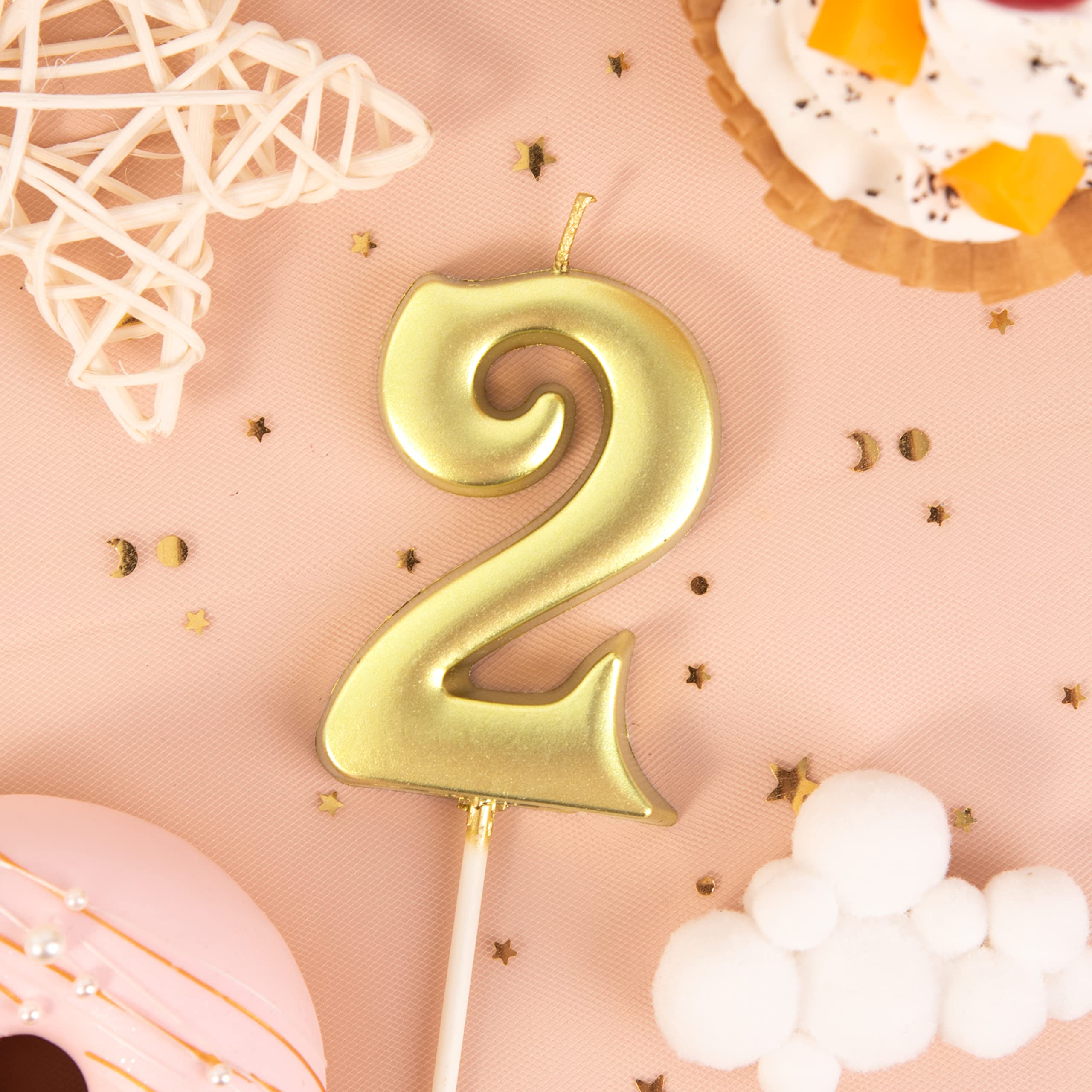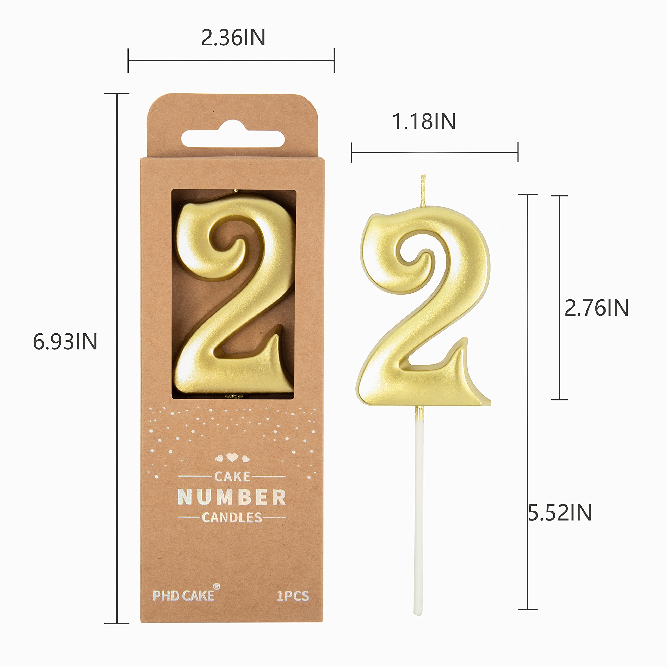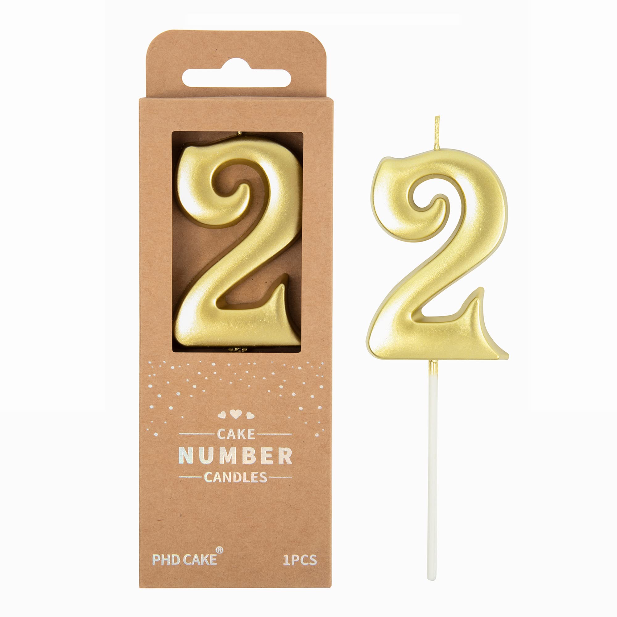 New: 2.76 Inch Large Elegant Gold 2 Number Birthday Candle designed to make your cake and birthday a unique and truly inspiring event.