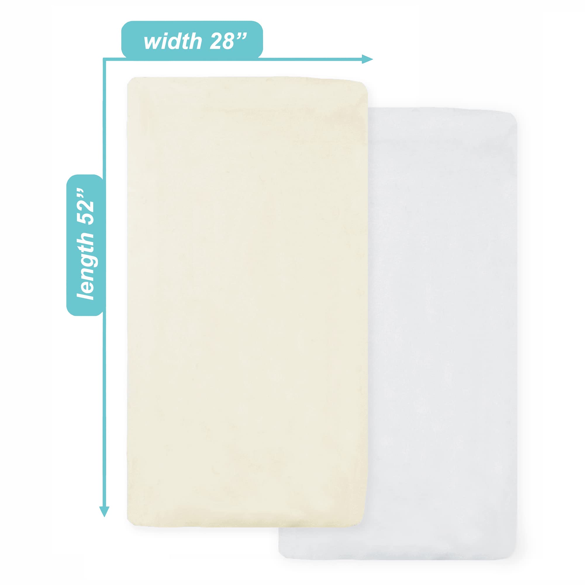 Perfect Fit & Secure Coverage: Made from 100% Cotton Jersey and measuring 28” x 52” with a depth of 9 inches, our crib sheets snugly fit most standard crib mattresses and toddler bed mattresses.