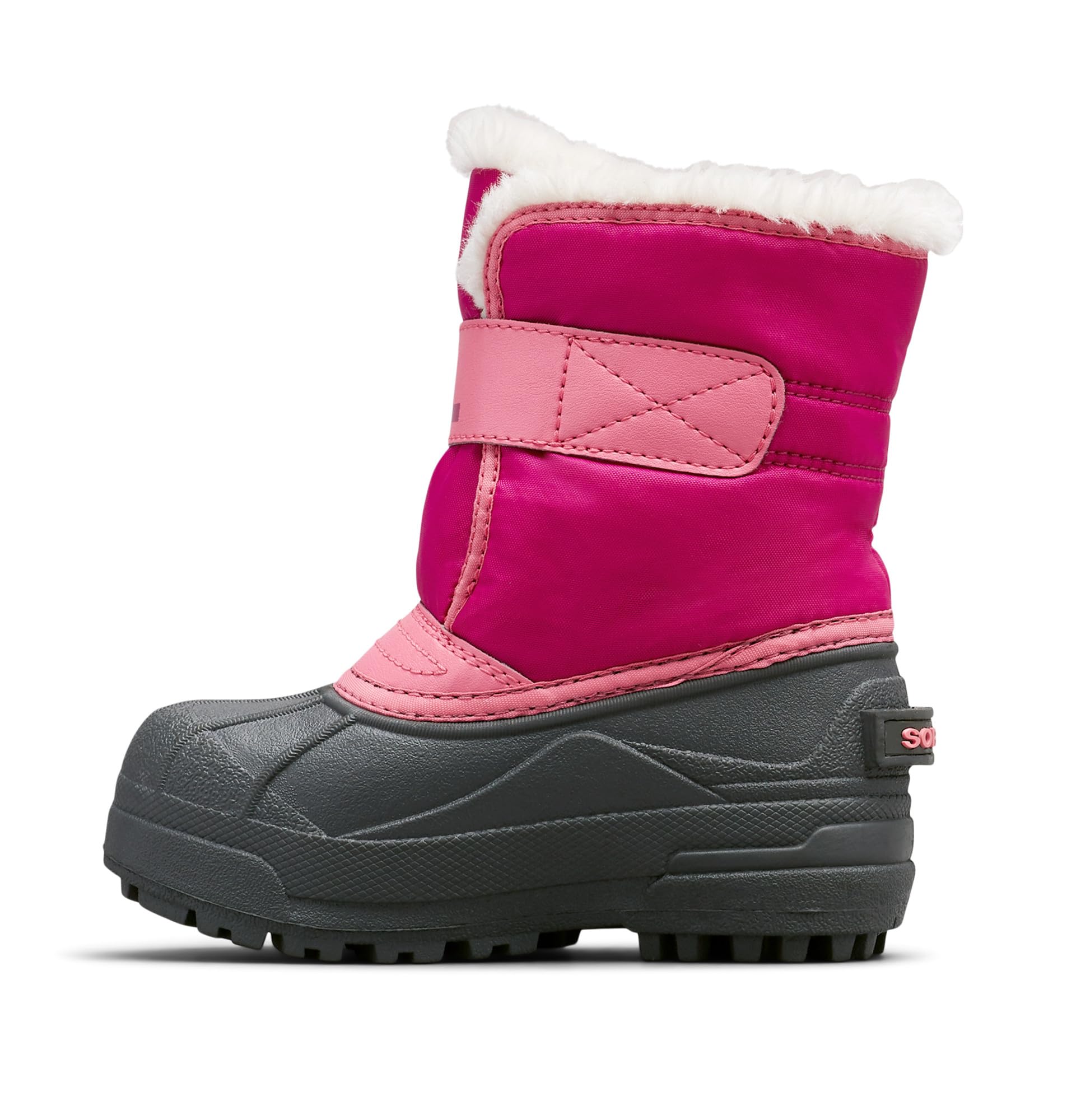 Description COMMAND THE SNOW They'll show the snow who’s boss with this ultra-warm boot. It features 200g of cozy insulation, plus a soft fleece lining, and easy-to-use velcro straps. The burly sole provides enhanced traction on slick terrain, whether they’re toddling up the sled hill or making snow angels.