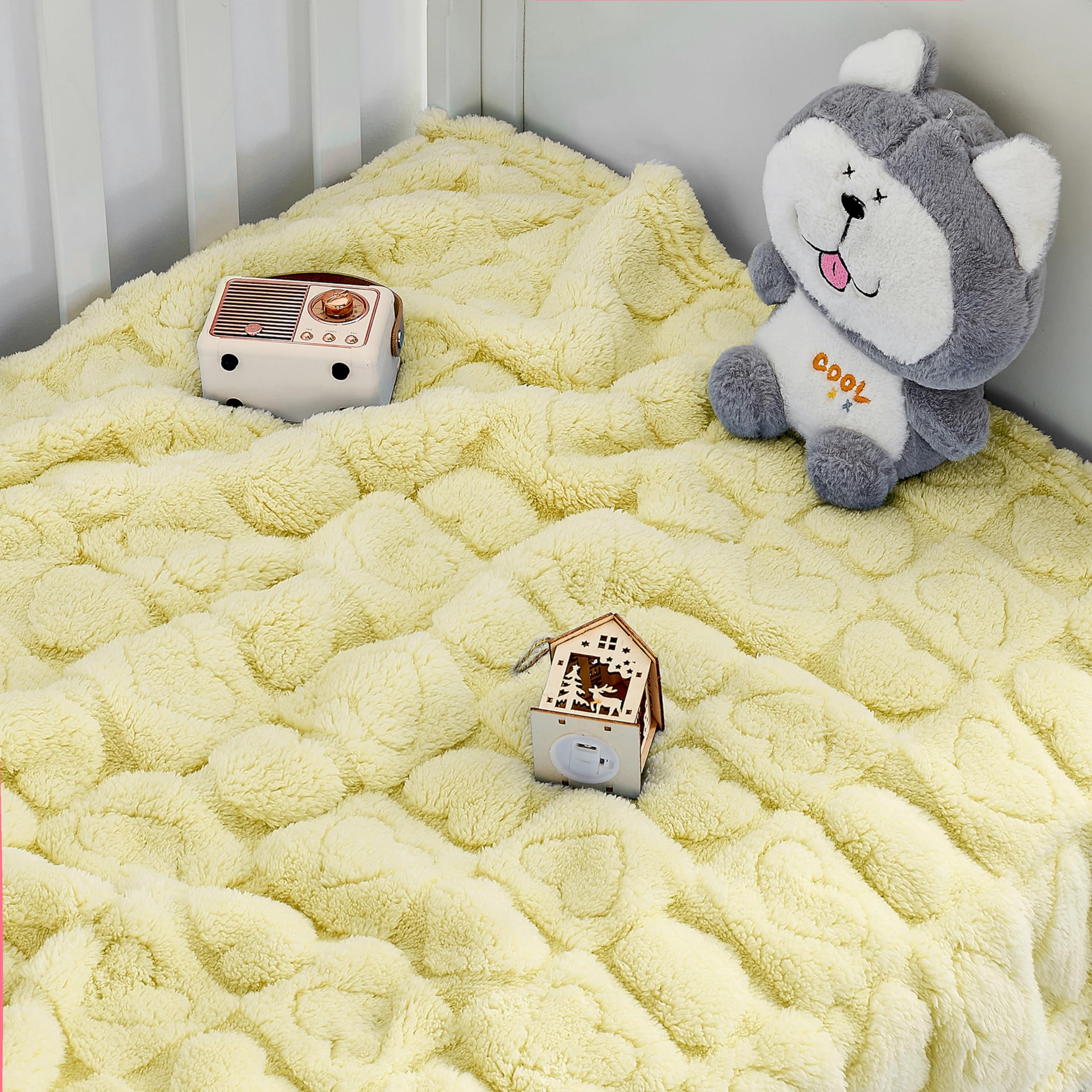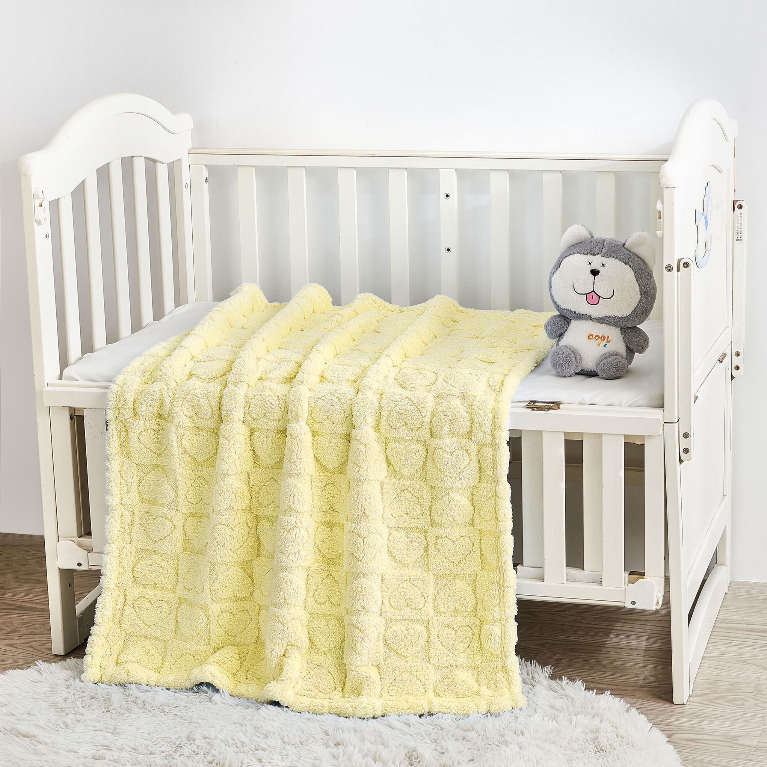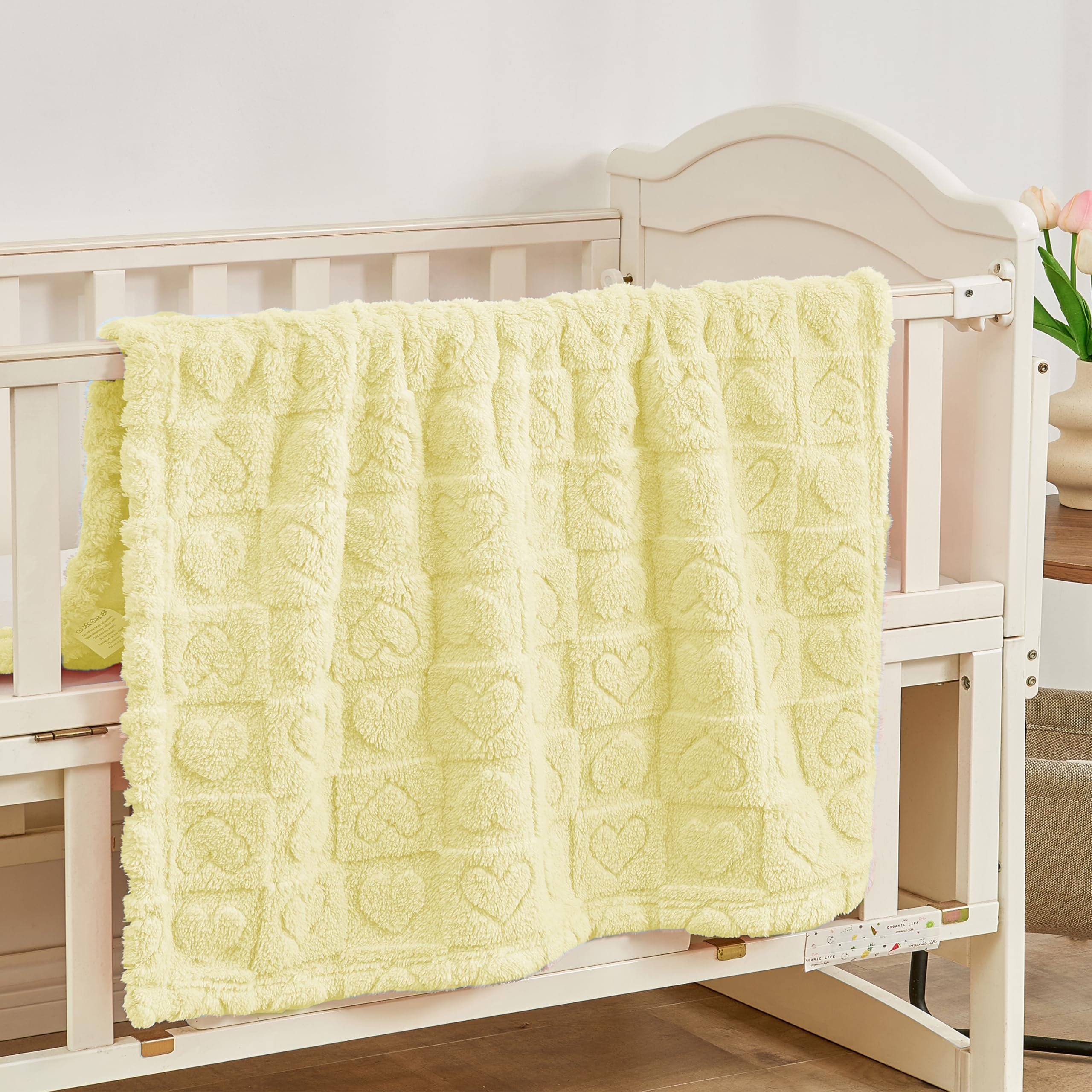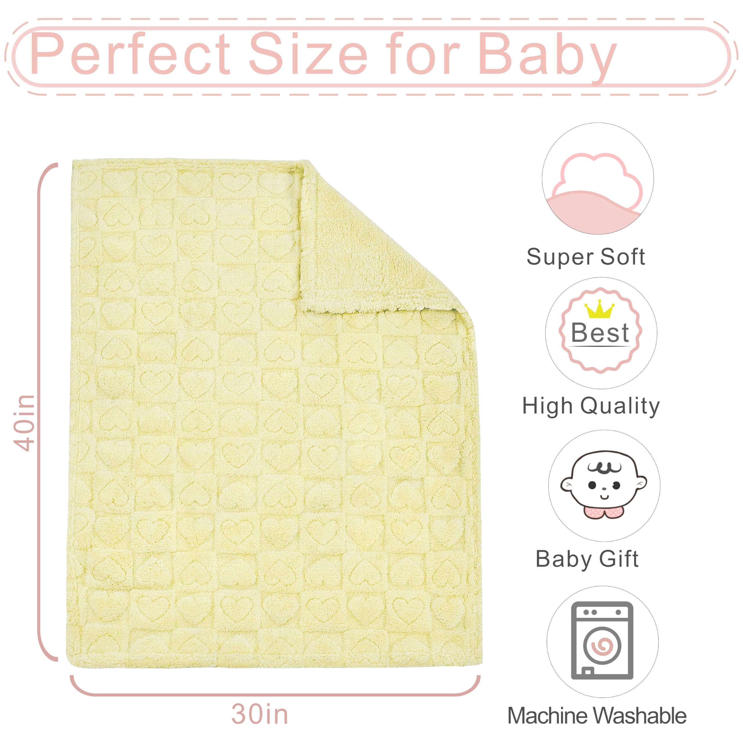 Yurhap Fleece Baby Blanket Heart Checkered Blanket, Ultra Soft Cozy Baby Blankets for Girls Boys, Fluffy Infant Toddler Newborn Receiving Blankets for Crib Stroller 30”×40” (Yellow)