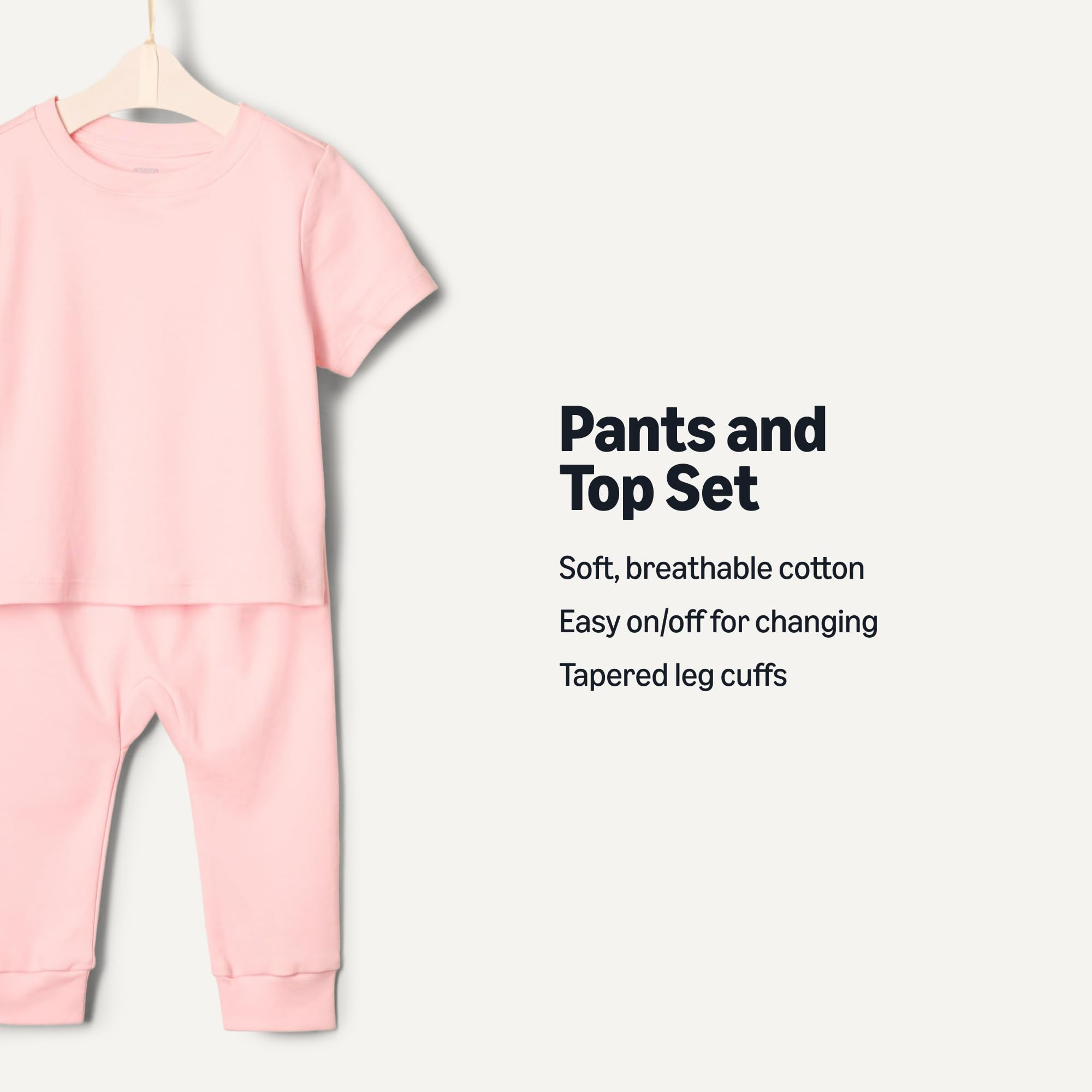DETAILS: Tee - Short sleeve, crew neckline. Pant - Pull-on, elastic waist with cuff detail at leg opening