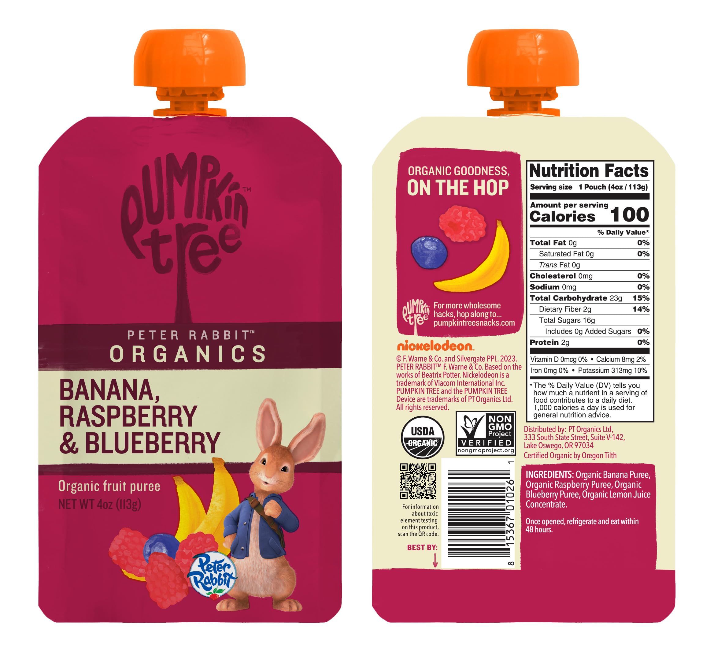 Peter Rabbit Organics Baby Raspberry Banana Blueberry, 4 oz