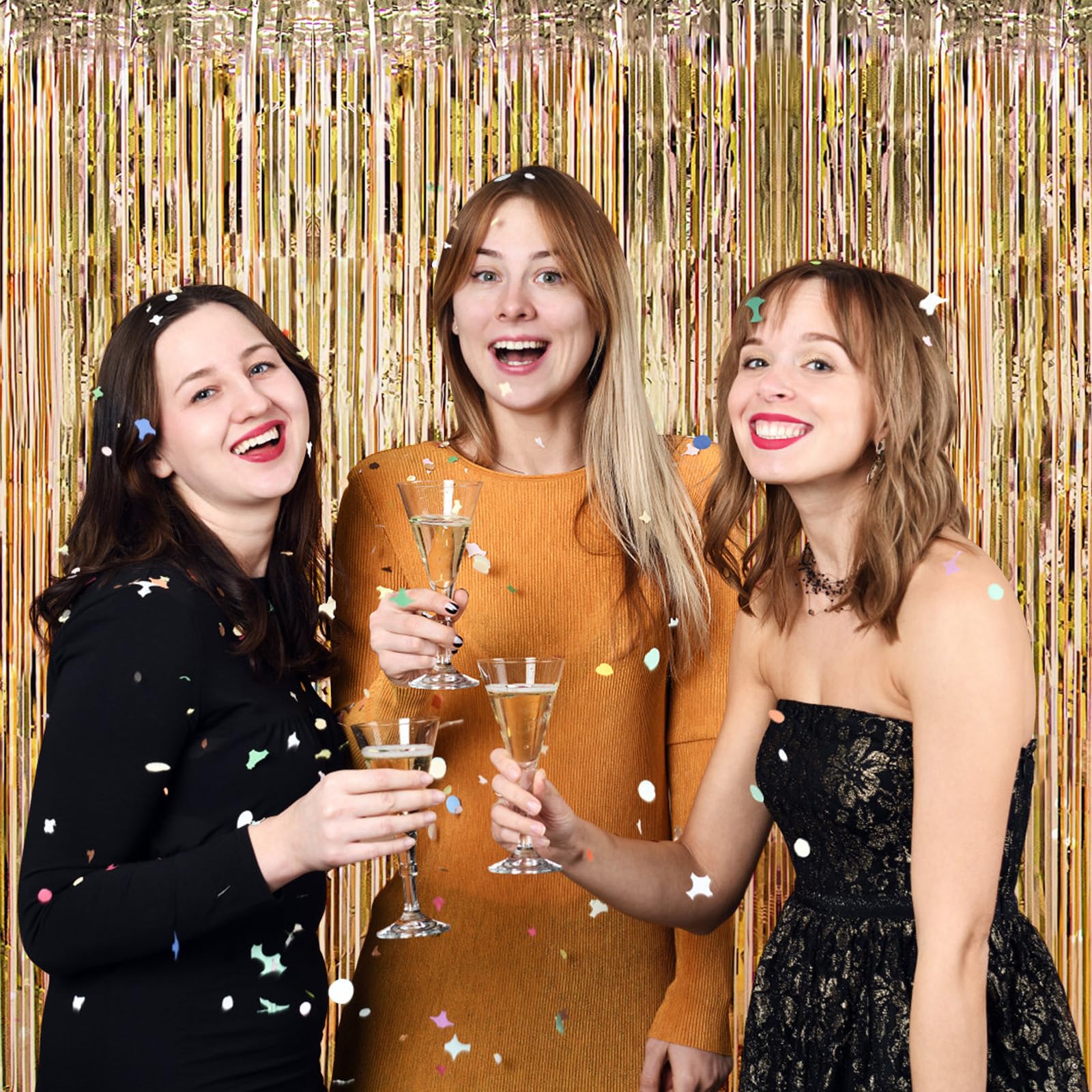 {Easy to Use}: Easily tear off the double-sided tape on the top and back of the tinsel curtain, and then stick this tassel curtain on the wall, window, table, door or any place you like to brighten up the party. Hang each individual golden tassel curtain in a different position or double layer to get a more perfect effect.