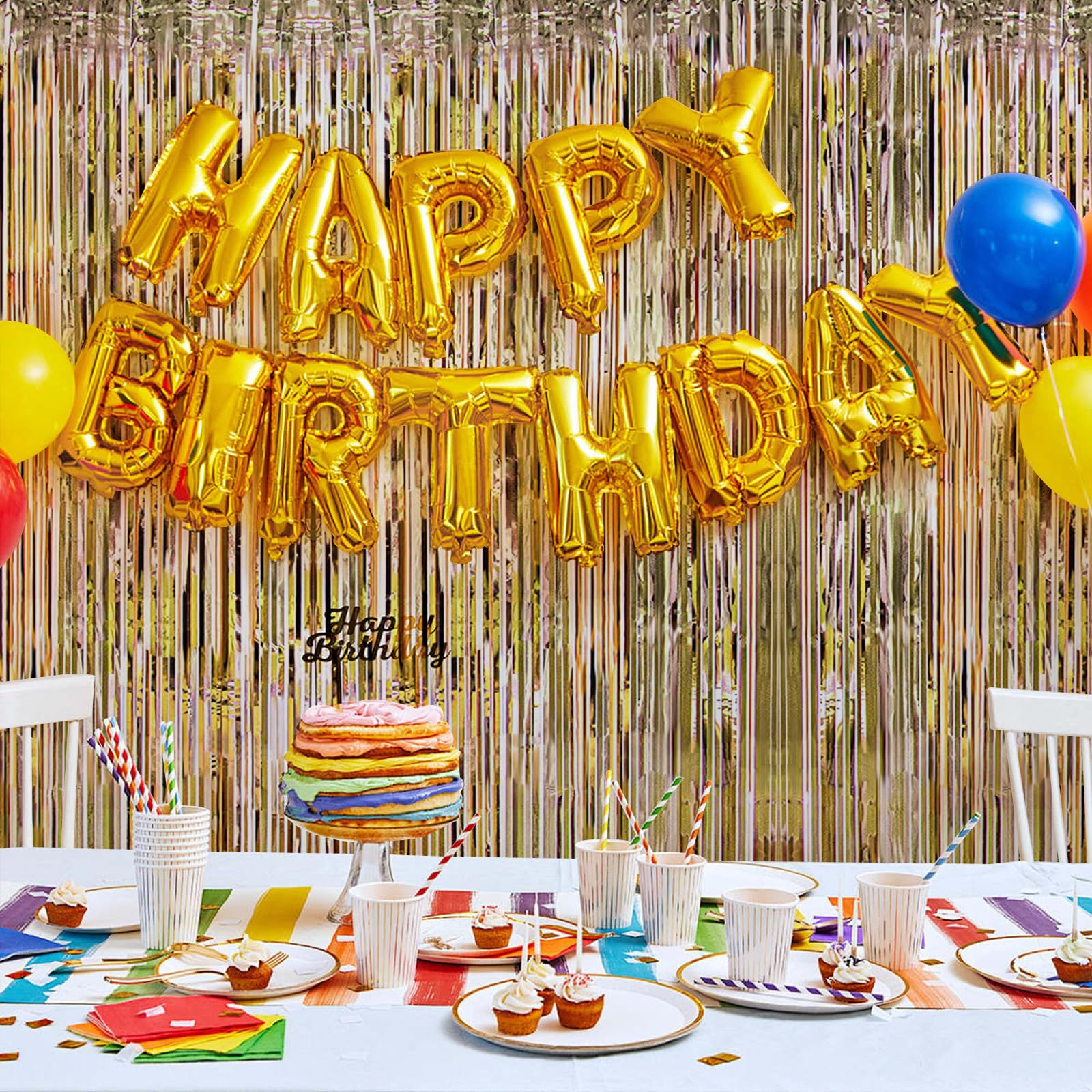 Foil Fringe Curtains Party Decorations 5 Pack 3.2 x 9.8 ft Tinsel Curtain Party Photo Backdrop for Birthday Party Baby Shower or Graduation Decorations Tinsel Foil Fringe Curtains Backdrop Tinsel Backdrop Streamers for Birthday Curtain Party Decoration Feature: 1. Made of high-quality PET material, which is safe and recyclable. The surface is shining and full of luster 2. Set of 5, Perfect length of 10 feet to cover an entire wall or cut to fit as needed. 3. Easy to use, just peel off the double-sided tape on the top of the back of the metal curtain and stick it for use. 4. The perfect decoration for a party, suitable for any birthday, holiday, and party decoration. 5. Warm Note: The smooth touch of the foil curtain makes the tassel easy to organize and not easy to get knotted. If there is a knot when using, just shake it off gently. Specifications: Material: Premium PET material Color: Black/ Gold/ Silver Function: Decoration Size: 1m x 3m/ 3.2ft x 9.8ft Package includes: 5 x Foil Fringe Curtains Warm Notice: 1. Please allow a little error for manual measurement. 2. Because of shooting or displaying effects, if the actual items are not same slightly as the picture shown, please take physical design and color shall prevail.