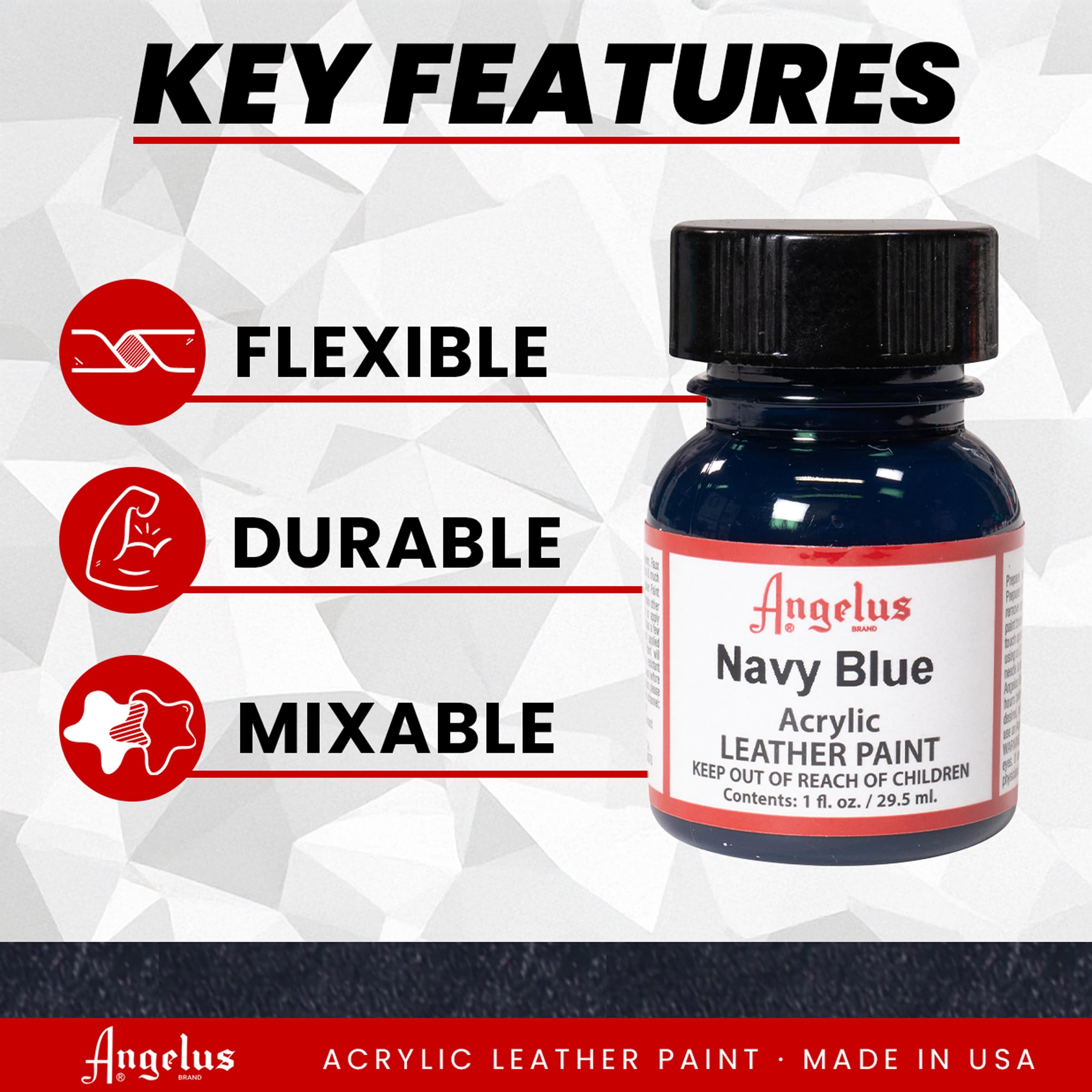 WATER-BASED FORMULA: Angelus Navy Blue Acrylic leather paint has a water-based formula so it’s not hazardous and easy to clean up with soap and water! No nasty smells, and can be used to create so many things.
