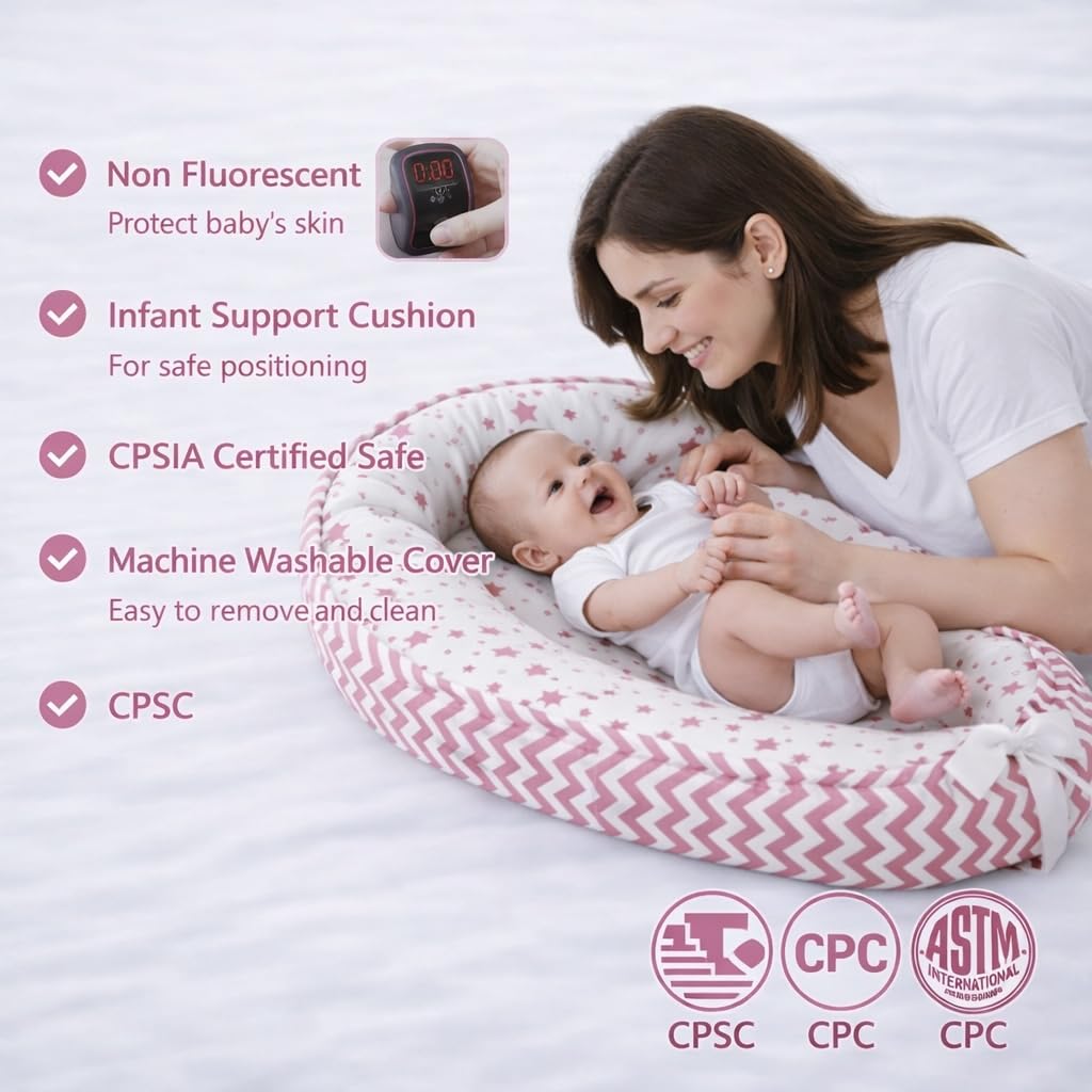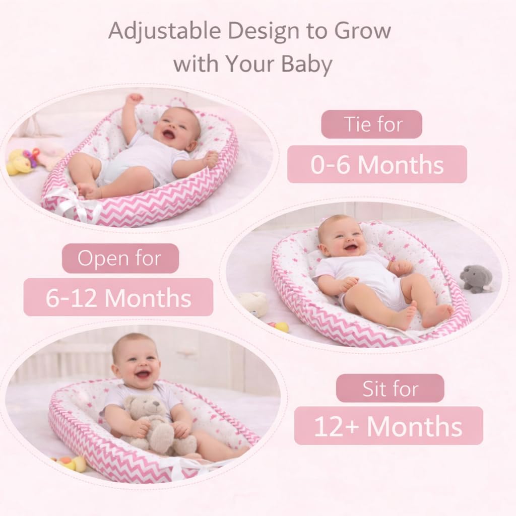 Lightweight & Travel-Friendly – Compact and portable with convenient carry handles, this baby nest is easy to take with you wherever you go—great for around the house or weekend visits to family.
