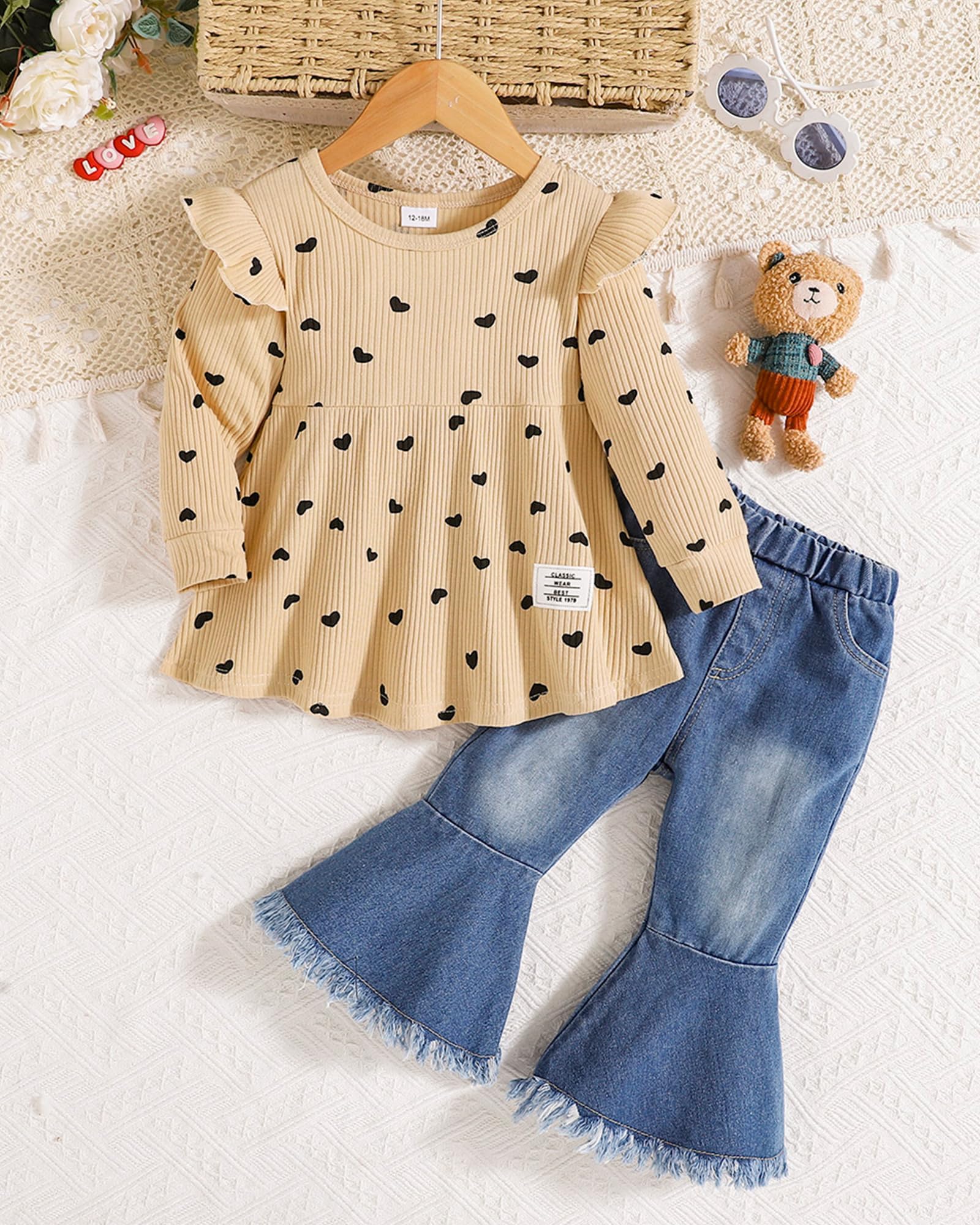 Design: The outfits feature a stylish design with options such as flower, leopard, and stripe ruffle long sleeve shirts, paired with solid color pants. The look is simple yet cute, perfect for any occasion.
