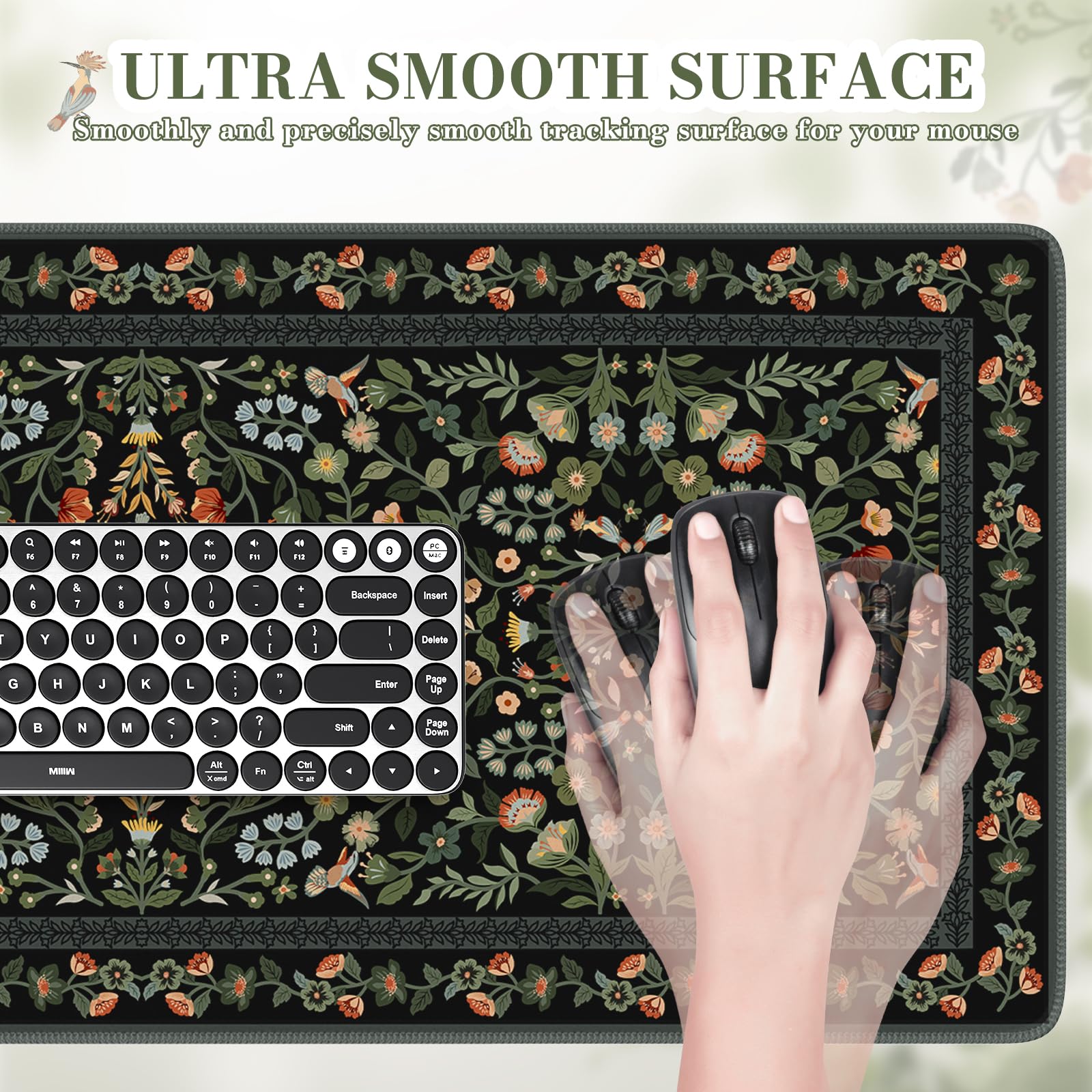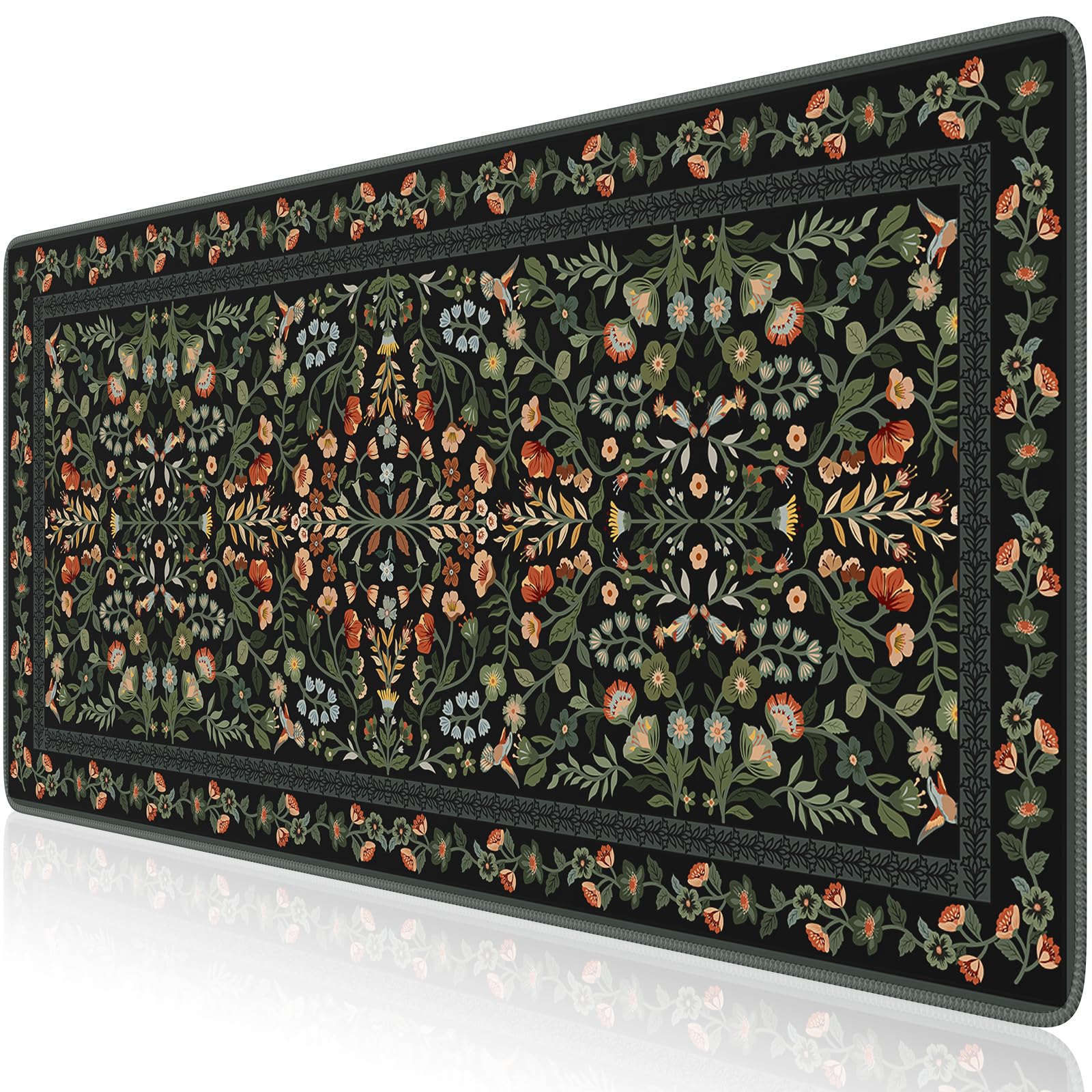 Enchanting Vintage Floral Design:Echoing the refined artistry of William Morris’ aesthetics, this desk mat transforms any workspace into a curated haven of retro elegance. A rich palette flows through intricate floral, butterfly, and symmetrical motifs, forming a dramatic, opulent focal point. It brings quiet luxury and nature-inspired charm to your home office, vanity, or living space