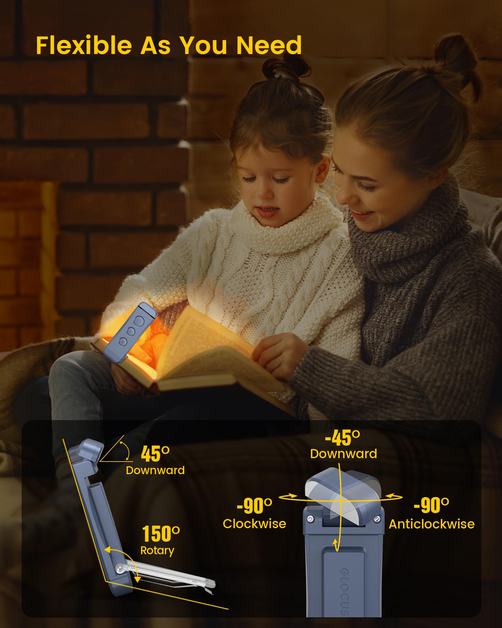 [3 Color Modes & Eye Caring] Unlike other book lights, our tiny reading lights for books in bed has 3 different reading modes: amber mode(1800K), breeze mode(3400K), and precise mode(6000K). Amber mode filters 99.9% blue light to protect your eyes and reduce your eye strain. The breeze mode provides you with a cozy and comfortable reading world for novel reading & poem reading. The precise mode highlights the area clearly and so you can concentrate on every detail of your book.