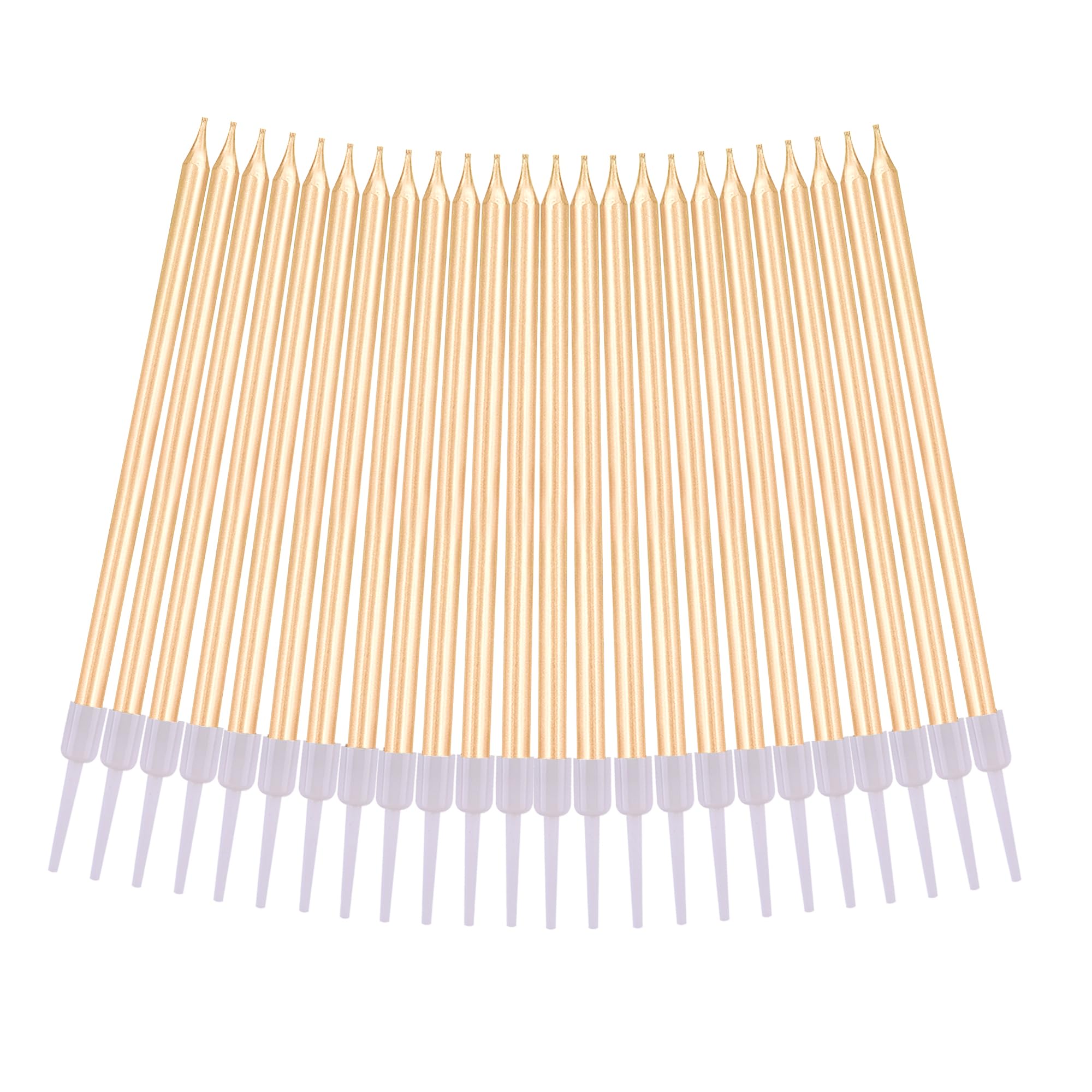 New: CAKE CODE's 24 long, thin & tapered elegant champagne gold cake candles are the perfect finishing touch to celebration cakes and cupcakes. Designed to make your celebration a truly lovely event.