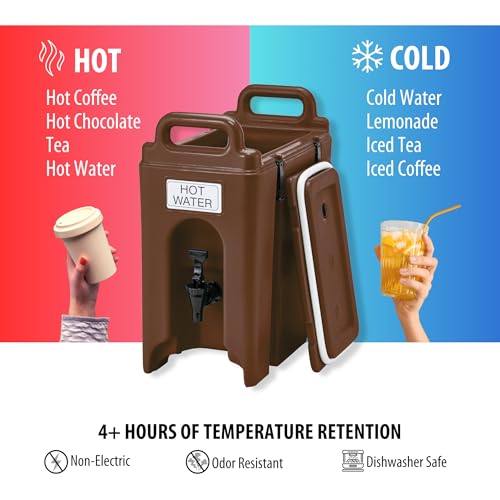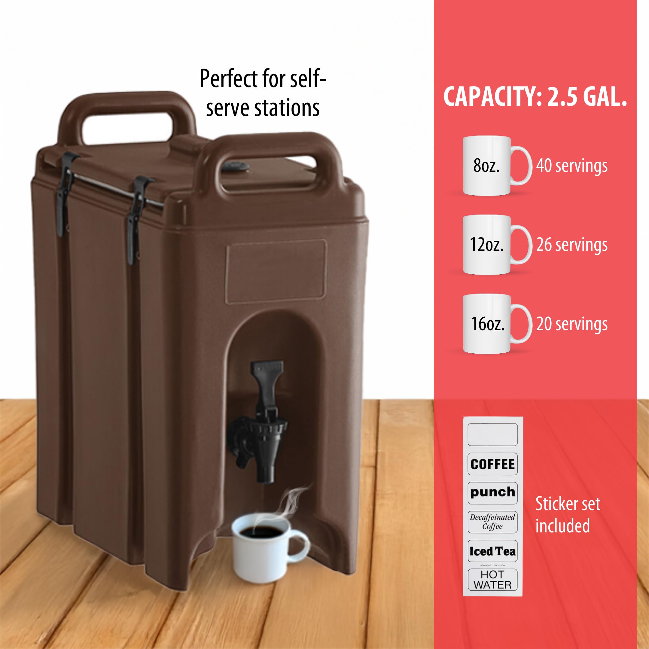 To accommodate larger cups, this Cambro insulated beverage dispenser features a drip-proof recessed faucet