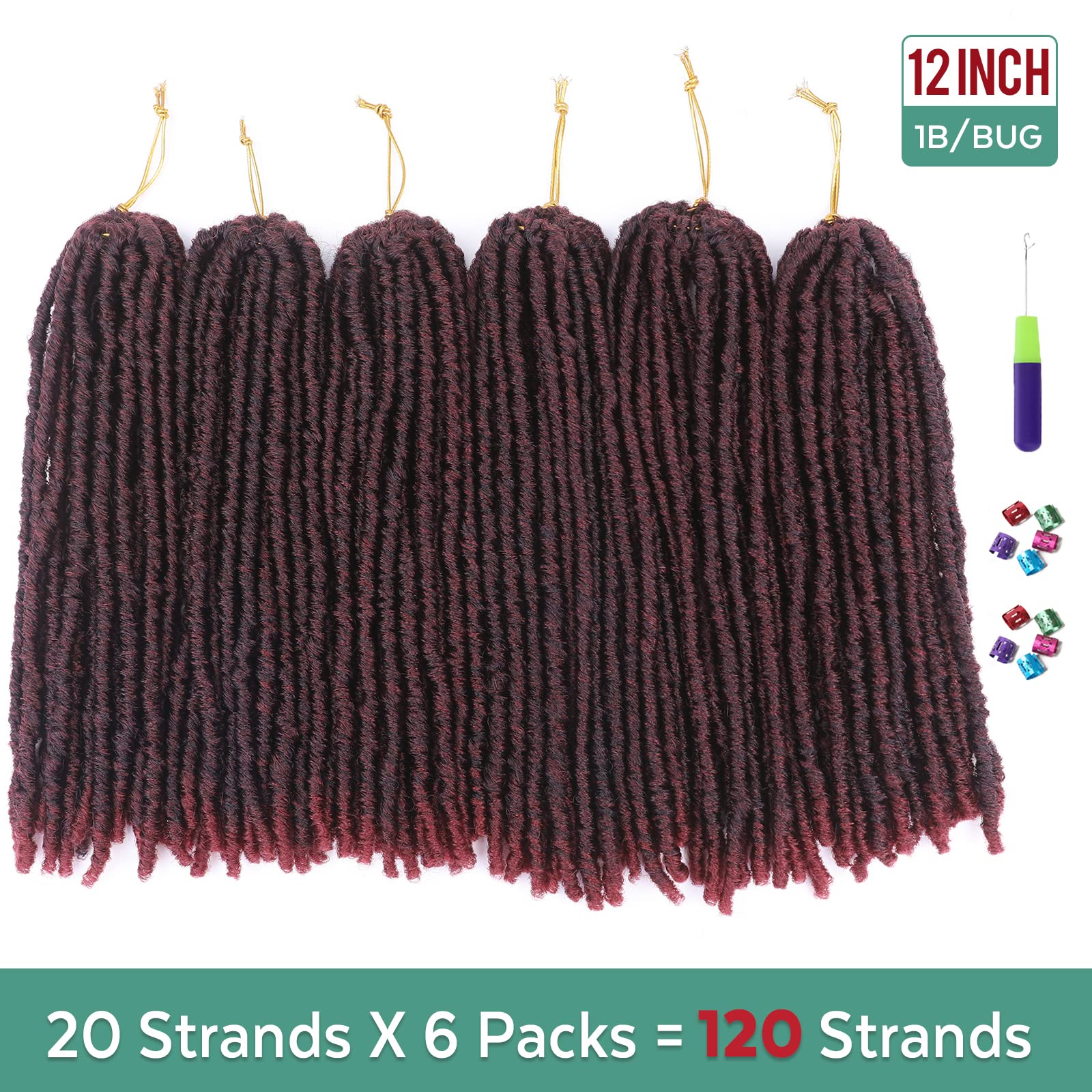 HAIR INFORMATIONS:12 Inches, #1B/30 , 6 Packs, 20 Strands/Pack, 120 Strands in total.
