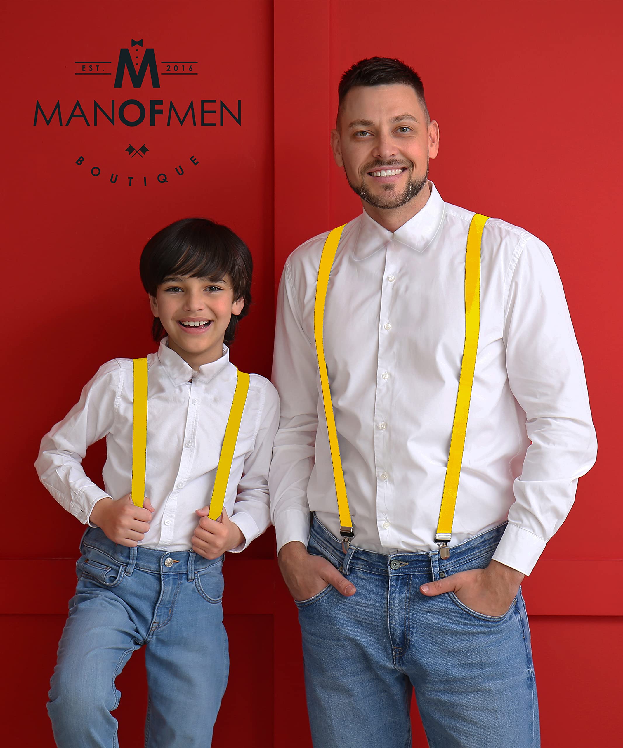 ONE SIZE FITS MOST - Perfect for the (almost) entire family! These suspenders fit men, women, and teens / young adults. Wear these unisex suspenders with confidence in your fancy tuxedo dress trousers or your most comfortable pair of jeans.