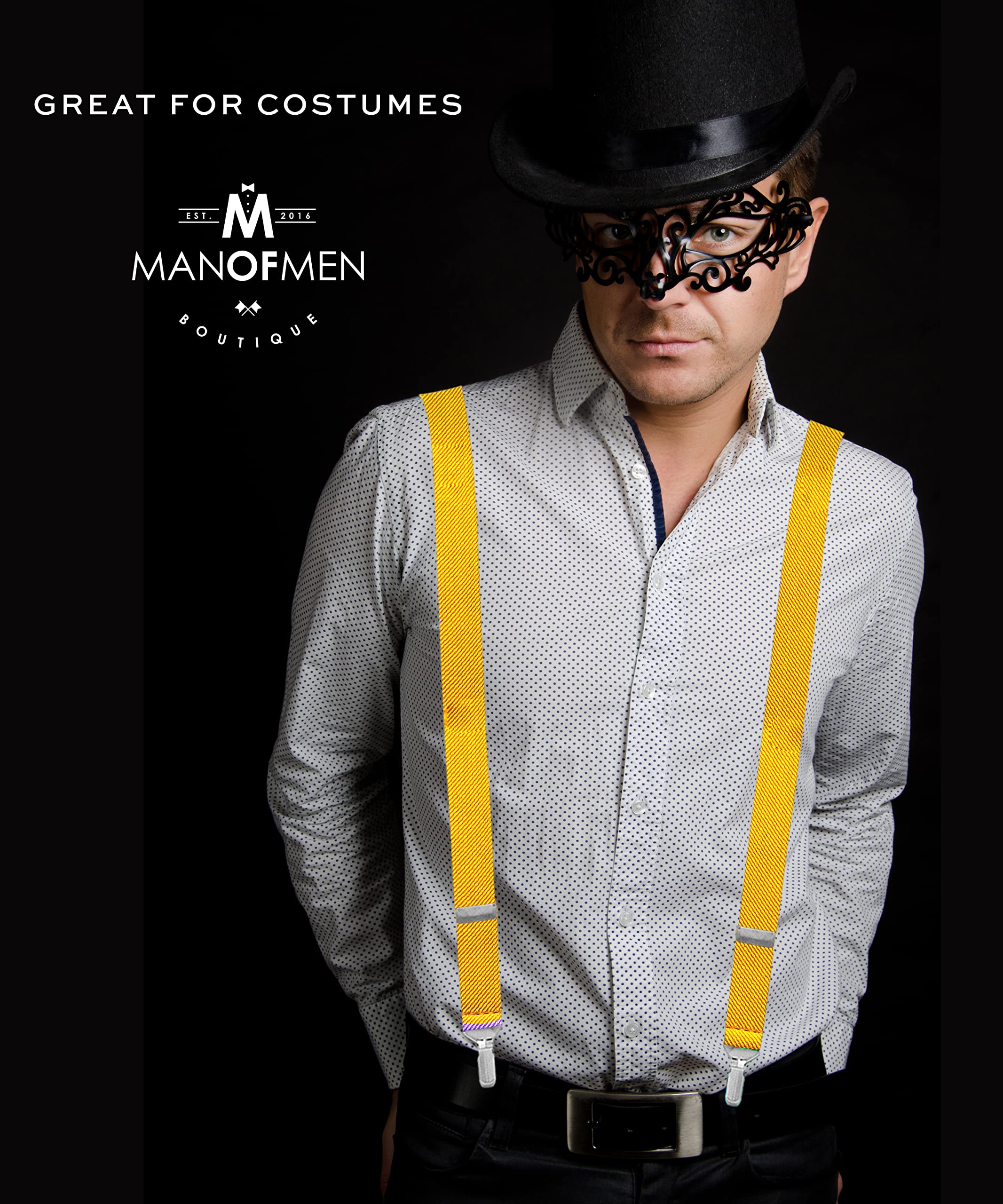 PERFECT FOR COSTUMES - be a firefighter, lumberjack, mime, fire captain, nerd, geek, businessman, mobster, detective, doctor, or any other character! Ratchet clips give you a PERFECT FIT when combined with premium quality elastic that moves with you.