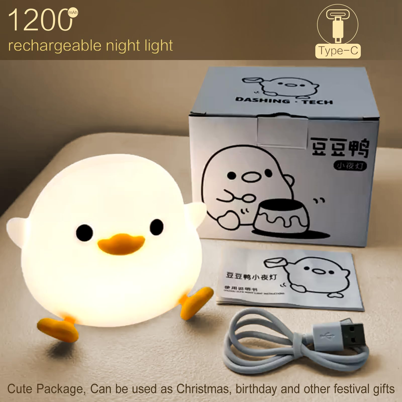 2 Levels Dimmable & 20mins Timmer: With 2 brightness settings controlled by a simple tap on the animal's bottom, plus a convenient 20-minute auto shut-off feature, this night light provides the perfect amount of soft, warm lighting for a cozy atmosphere. With a built-in 1200mAh rechargeable battery, this duck lamp can run for up to 24 hours on a single charge, making it portable and wireless for use during nighttime feedings, camping trips, or as an emergency light.
