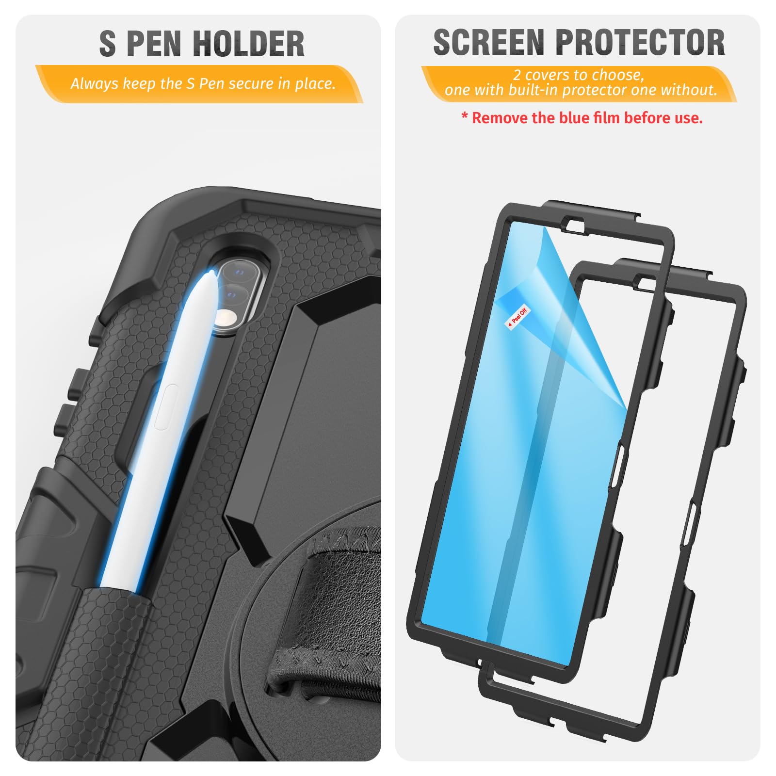 360 Rotating Hand Strap & Stand : With adjustable swivel hand strap and stand, you can hold the tab s7Fe 12.4 inch by one hand and find the most comfortable viewing angle you need. The built-in stand provides a stable supports, with viewing/drawing/typing angles you need, and it can be folded up when not in use.