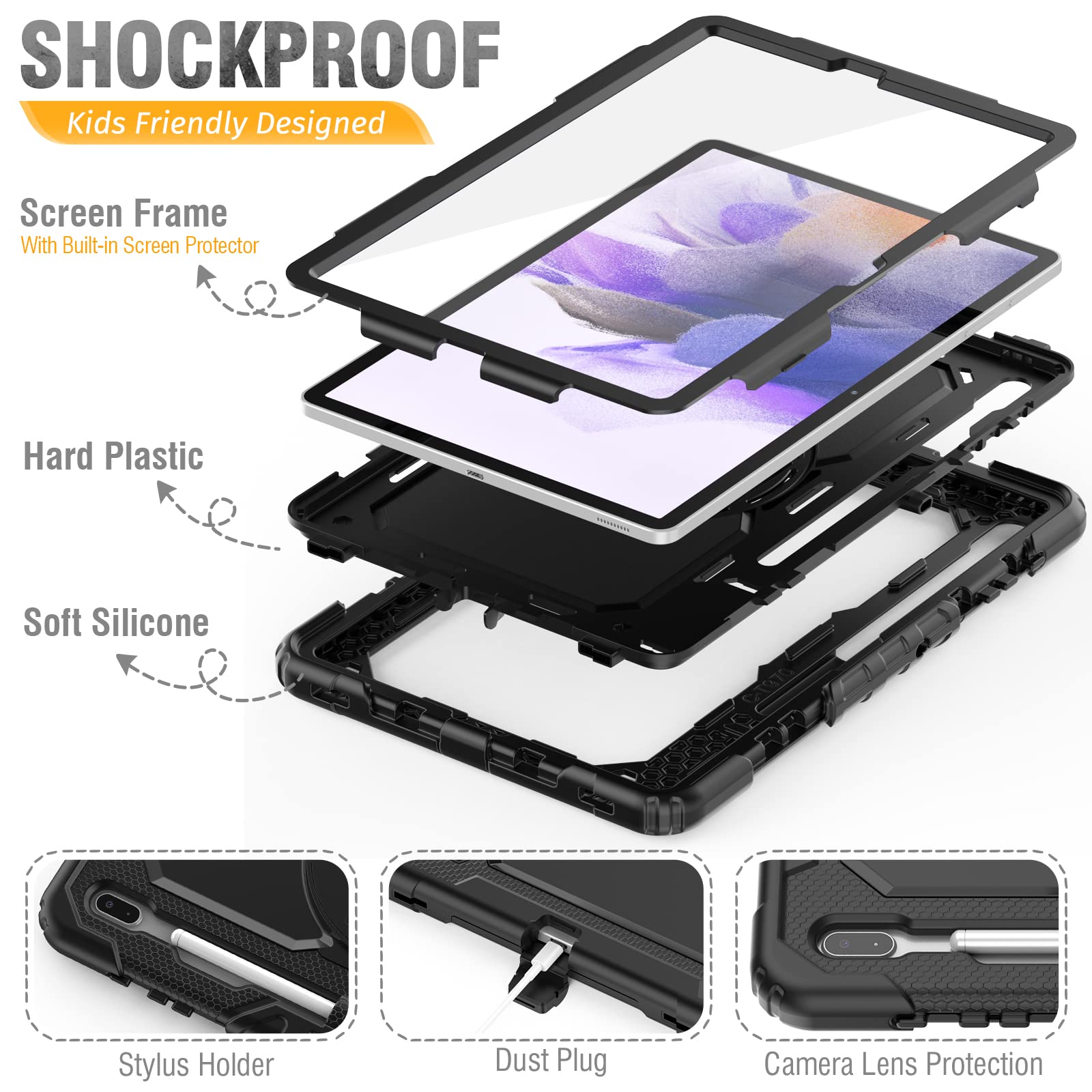 Shockproof & Screen Protector : This case for Samsung Galaxy Tab S7 FE 5G case is made of anti shock material, soft silicone, hard PC shell and built-in screen protector, with its sturdy structure to protector your tablet from shock, drop, scratch or accidental damages in daily use.