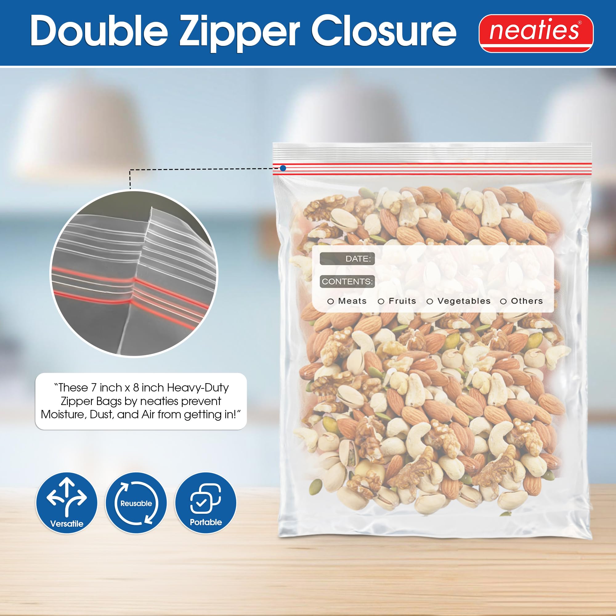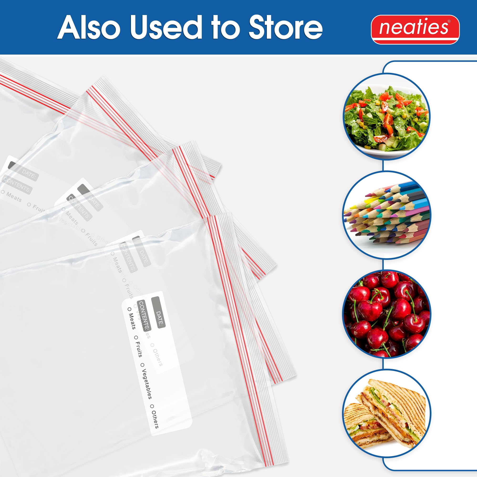 LARGE STORAGE: Neaties is here to make life neater with 1 Quart Storage Bags. At 7x8”, they’re ideal for anything from crayons to cuisine and feature a writable label for easy ID.