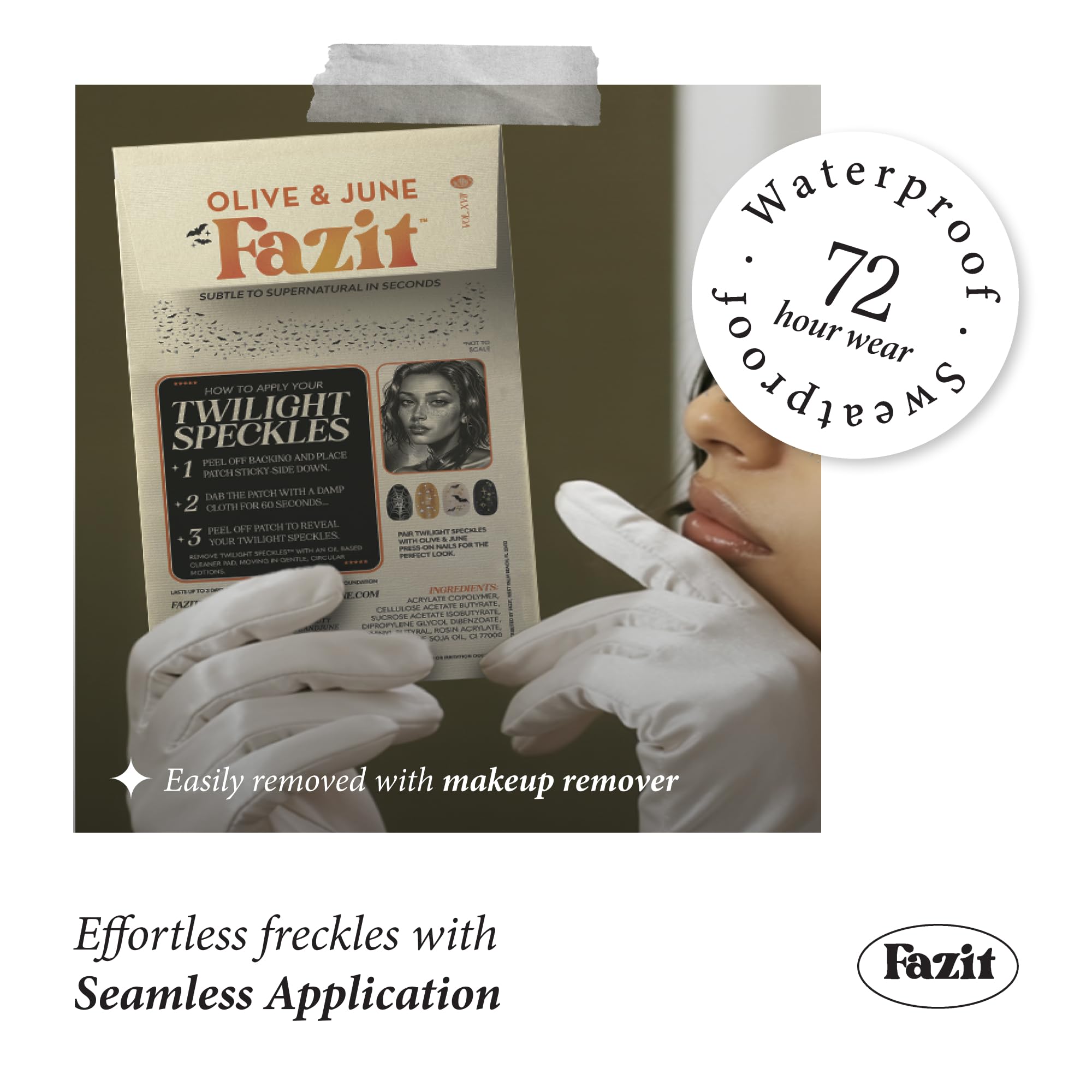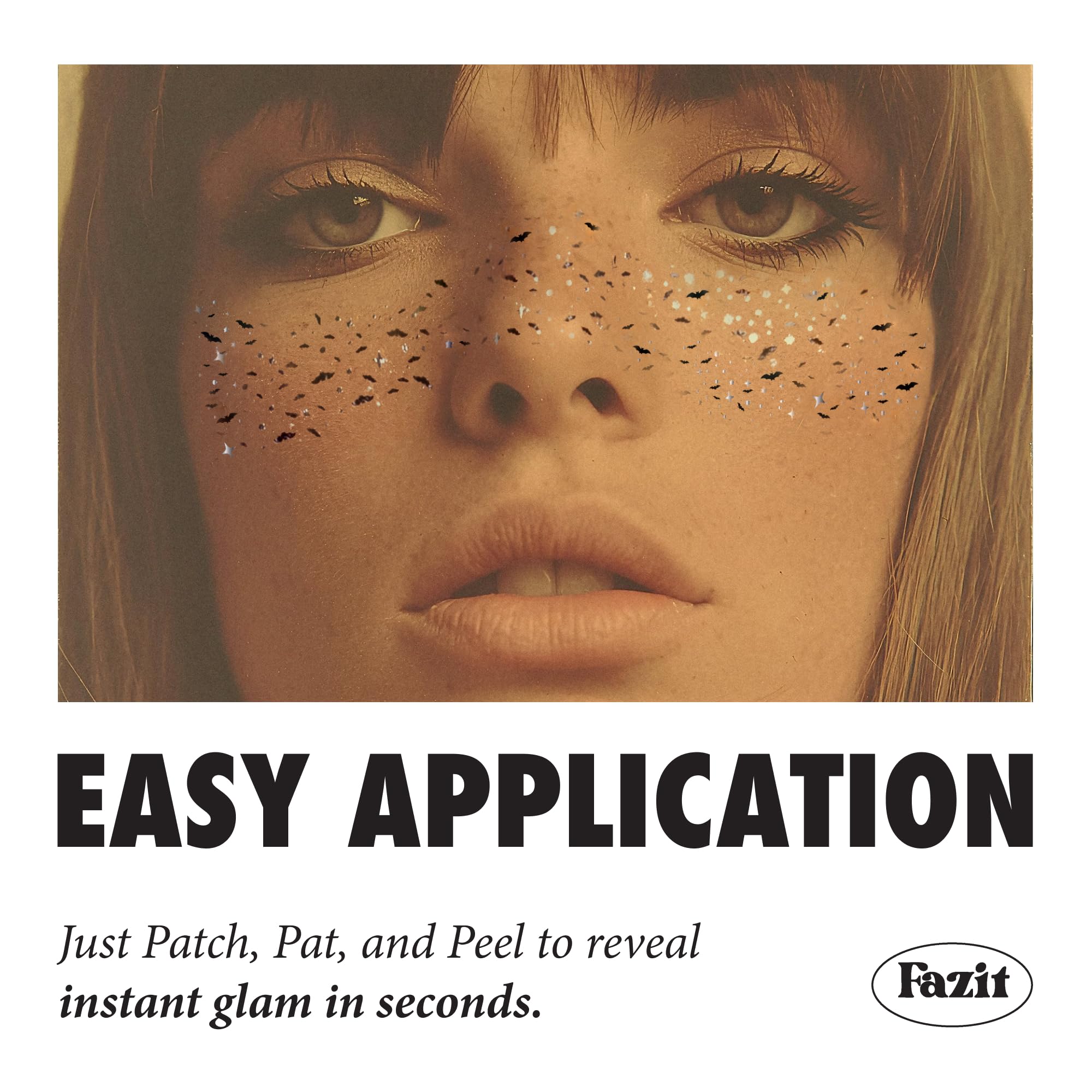 EASY APPLICATION - Applying our water resistant twilight eye speckle patches is a breeze! First, peel off the backing and place the sticky patch on your skin. Then, wet a towel and dab the patch for 60 seconds. Finally, peel off the patch to reveal your glamorous new speckles. It's that simple – no mess, no fuss, just beautiful, natural-looking speckles in minutes. Perfect for anyone looking to add a touch of charm to their look with minimal effort!
