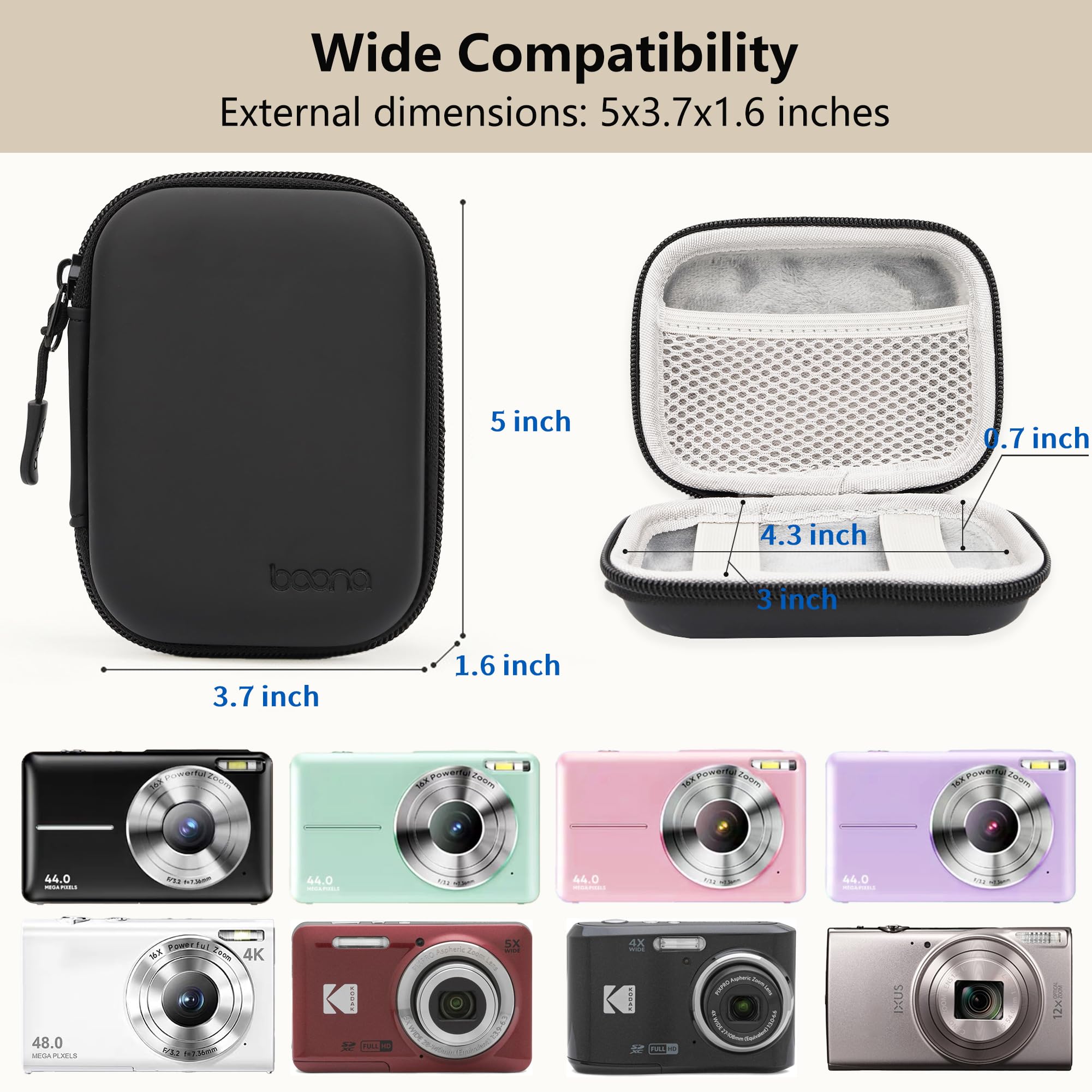 Excellent Protection: The digital camera case features a rugged EVA shell for waterproof, shockproof, and pressure-resistant protection. Its velvet-lined interior prevents scratches, keeping your kodak pixpro fz45 or other compact cameras safe alongside digital camera accessories