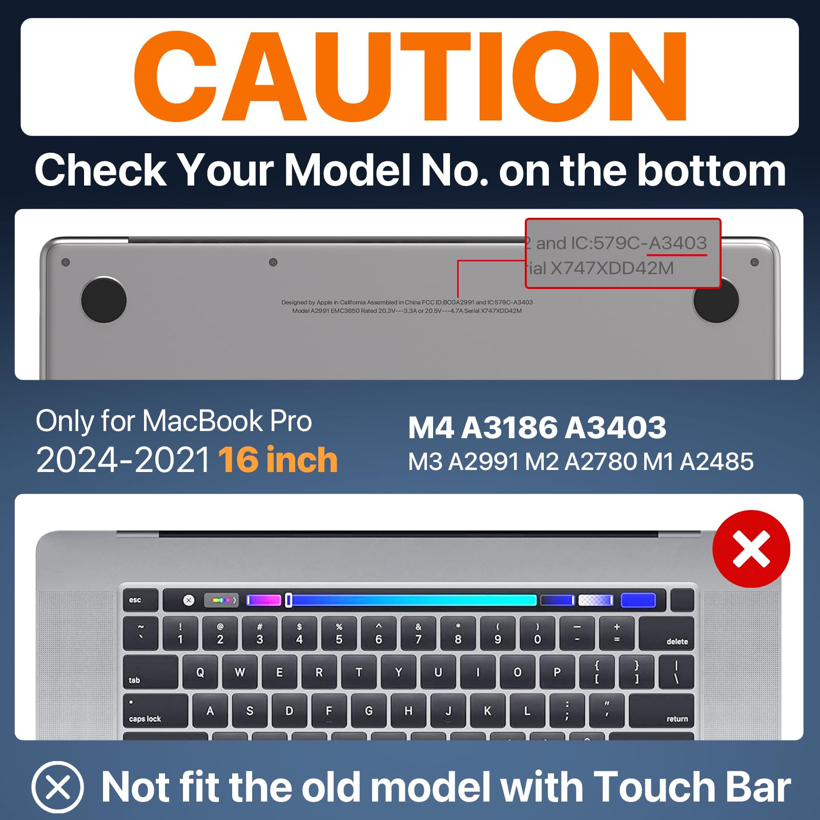 Attention: Only compatible with MacBook Pro 16 inch 2025-2021 Release with M4 M3 M2 M1 Pro / Max Chip (Models: A3186 / A3403 / A2991 / A2780 / A2485). Not fit the old model in 2019; Not fit A2141. Pls verify Model No. on the underside of MacBook before buying