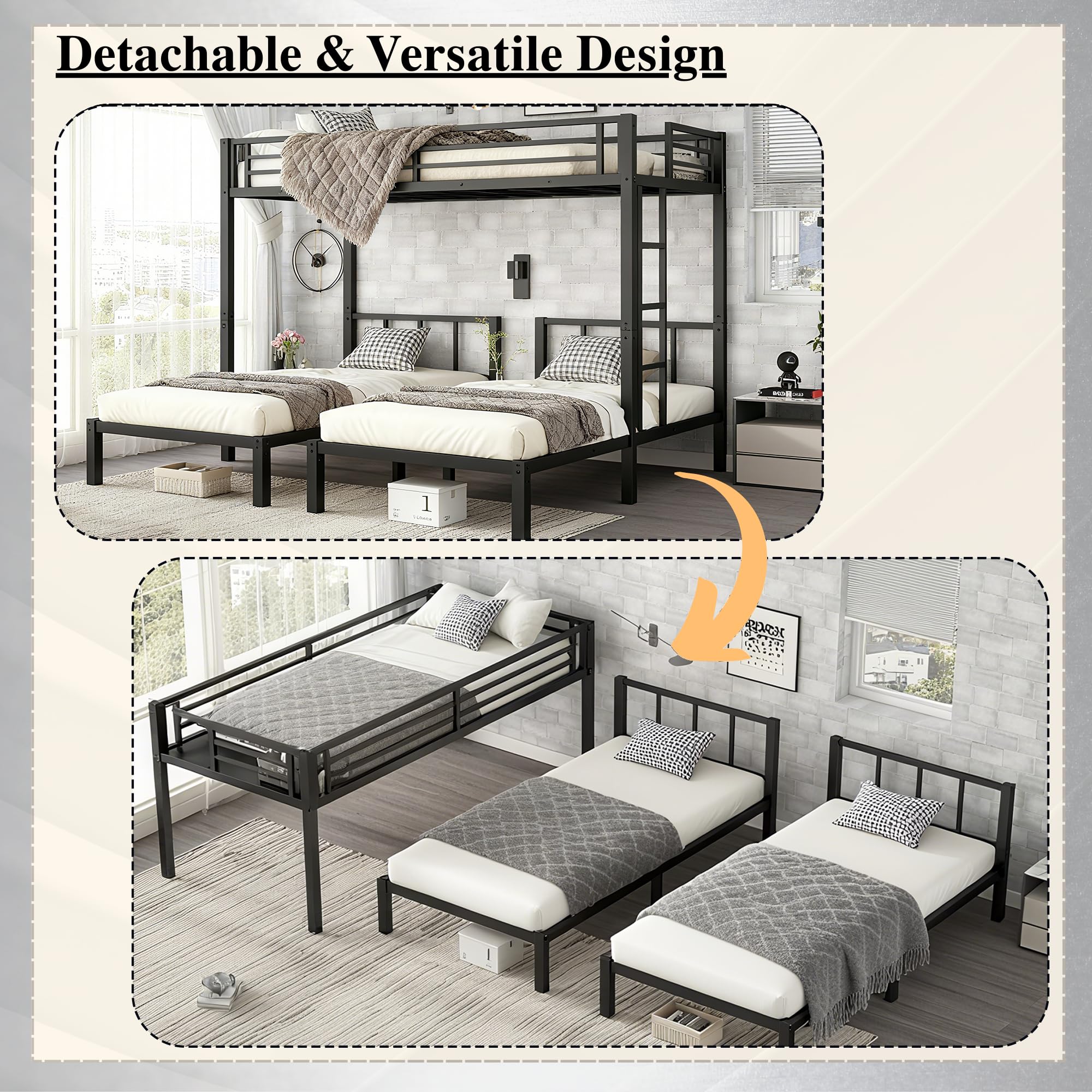 🏆🏆【Detachable & Versatile Design】Designed for flexibility, this 3 bunk bed for kids can be easily converted into 3 separate twin beds. As your children grow and need more privacy, simply detach the beds and place them in different rooms.