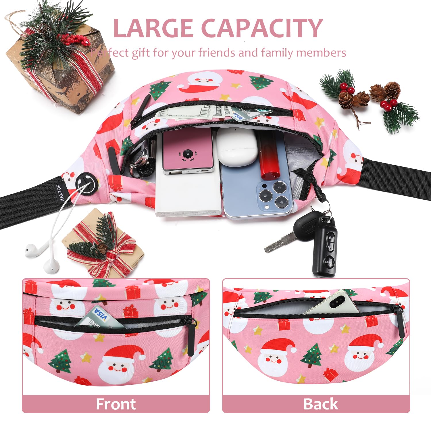 ▶ Christmas Gifts for Women Men,Enjoy Various Activities and Festival Hands-Free — The Fanny Pack size is about 14.3"x 5.9" x 3.5" with 4(Four) zippered pockets perfect for most people who want to be hands free to carry the most needed items,include all size of phone, passport,wallets, keys,ID and other small items.Perfect for various activities such as Shopping,Traveling,Walking,Cycling,Hiking,Holidays,Festivals and so on.Best Christmas exchange gift ideas for Family Members,Friend.