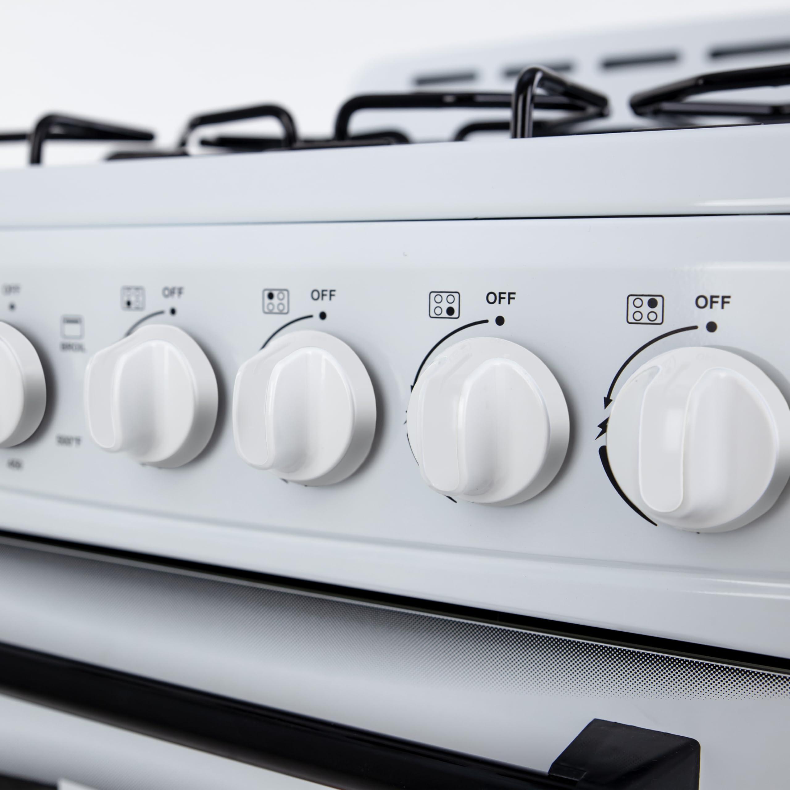 MODERN CONTROLS & SAFETY FEATURES: Full-range temperature control, an oven light with an ON/OFF switch, a 60-minute timer, and a backsplash with integrated oven vents for proper air circulation.