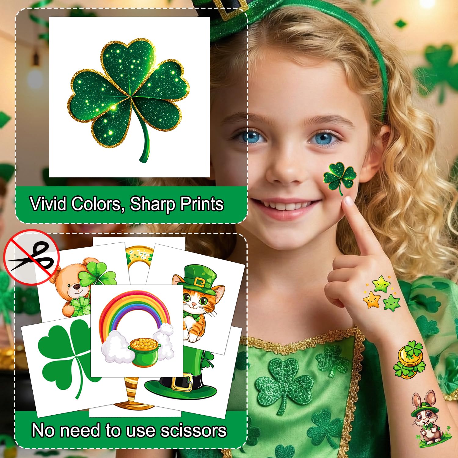 Vibrant & Festive Designs: Get ready for the luck of the Irish! Our st patricks day tattoos feature a huge variety of unique patterns including lucky shamrock stickers, leprechauns, pots of gold, and rainbows. These st patricks day decorations are perfect for adding a touch of green to your skin and making your st patricks day kids celebration unforgettable