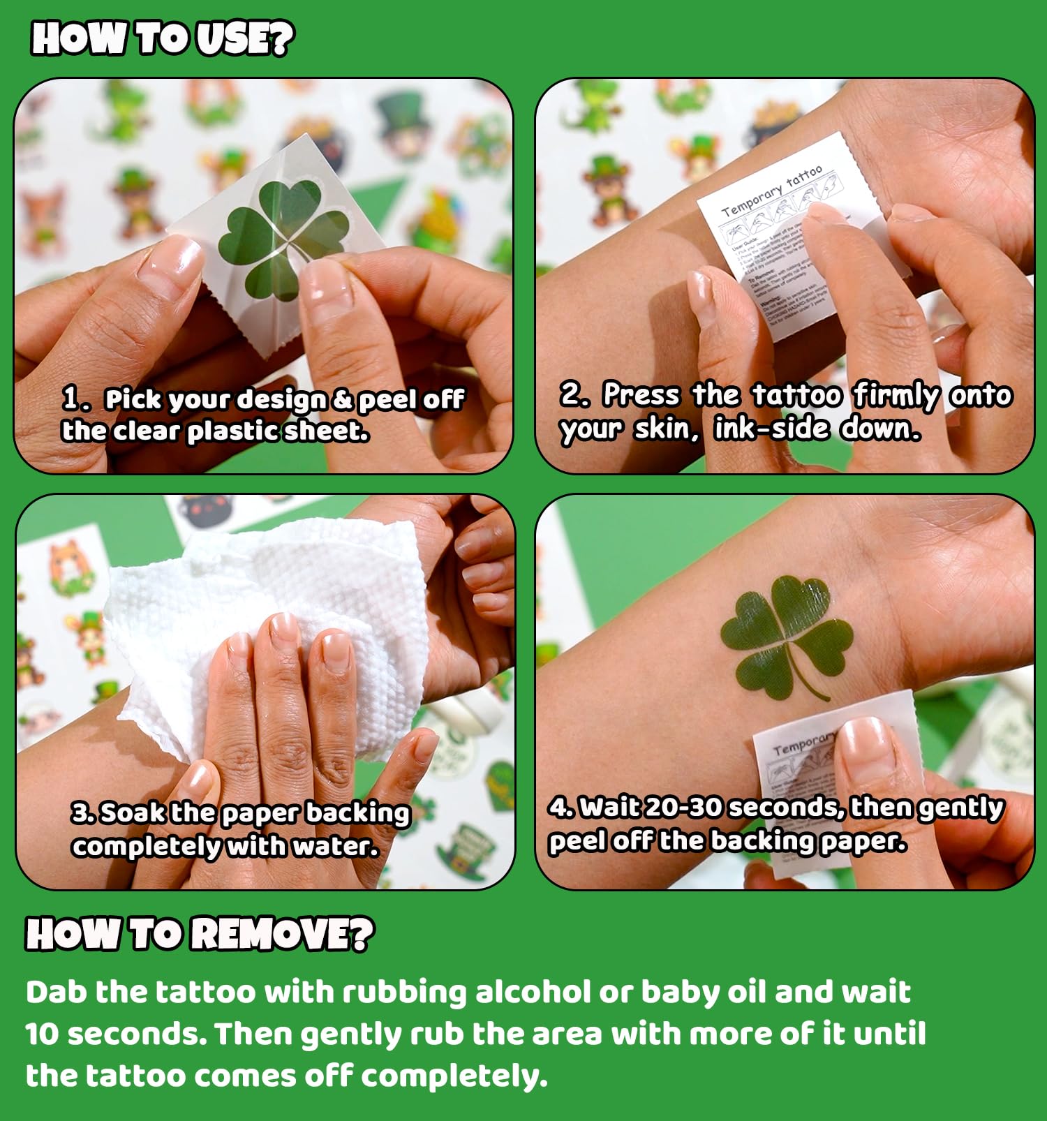 Easy Application & Long Lasting: Apply these st patricks day face stickers in just 20 seconds with water! They adhere smoothly to arms, faces, and hands. Our st patricks day accessories for women and kids are designed to last for 3-5 days but can be easily removed with baby oil or rubbing alcohol, making them convenient st patricks day accessories for all ages
