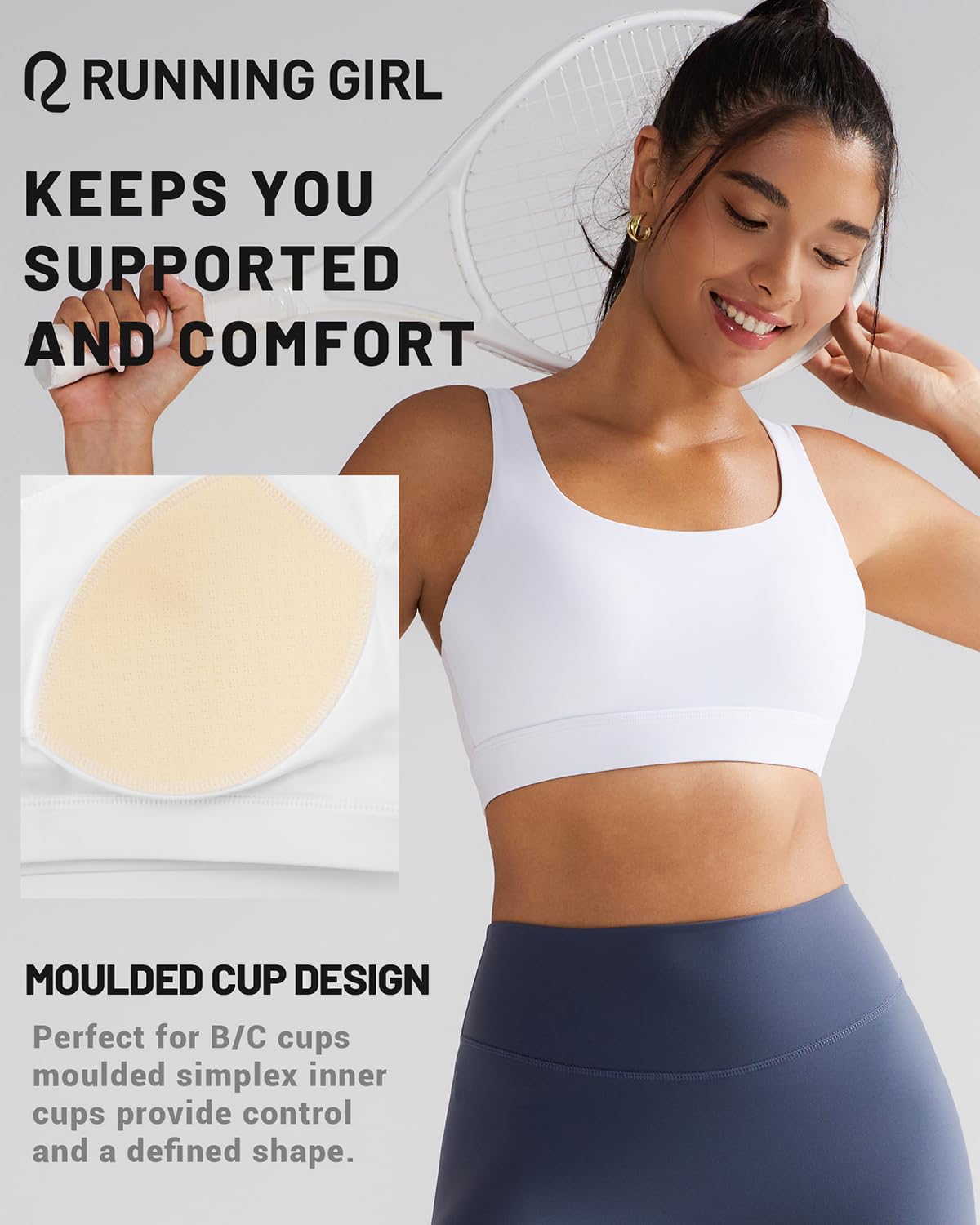 【Tech That Works Hard So You Can】Fixed molded cups hold their shape wash after wash—no awkward shifting or uni-boob!4-way stretch Lycra fabric moves in every direction you do, providing flexible support that moves when you move.Forget see-through worries. Even in a sweaty spin class or under a white tee, our Double-layer sports bra provides total coverage and added support, so you never have to think twice.Quick-dry fabric keeps sweat off your skin so you stay cool and dry even mid-circuit.