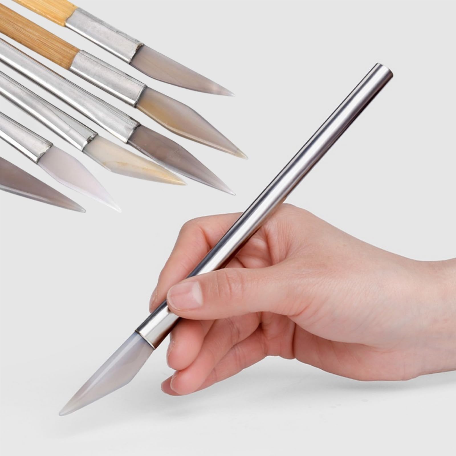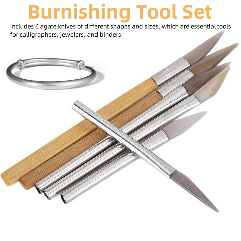 Burnishing Tool Set: Includes 6 agate knives of different shapes and sizes, which are essential tools for calligraphers, jewelers, and binders, including professionals and hobbyists