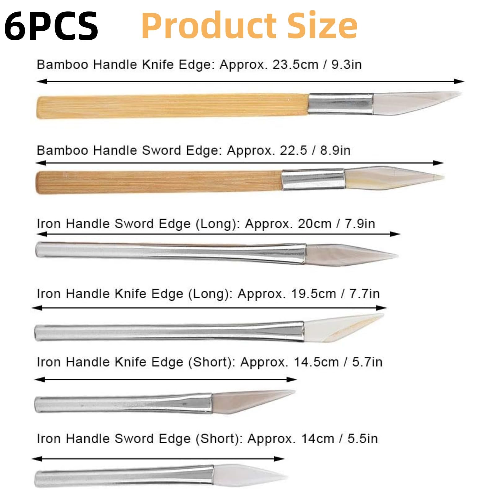 Specification: Condition: 100% Brand New Item Type: Agate Burnisher Usage: Gold, sterling silver, platinum, jewelry surface polishing. Material: Agate (Knife), Bamboo, Iron (Handle) Handle Size: Bamboo Handle Knife Edge: Approx. 23.5cm / 9.3in Bamboo Handle Sword Edge: Approx. 22.5 / 8.9in Iron Handle Knife Edge (Long): Approx. 19.5cm / 7.7in Iron Handle Sword Edge (Long): Approx. 20cm / 7.9in Iron Handle Knife Edge (Short): Approx. 14.5cm / 5.7in Iron Handle Sword Edge (Short): Approx. 14cm / 5.5in Usage: Gold, sterling silver, platinum, jewelry surface polishing. Package List: 6 x Agate Burnishers Note: The agate knife is made of pure agate which colors are gray and red. The color of each batch of products will be slightly different, and the size of each specification will also be slightly different. Agate knives will be shipped randomly when shipped, so they cannot be consistent with the picture.