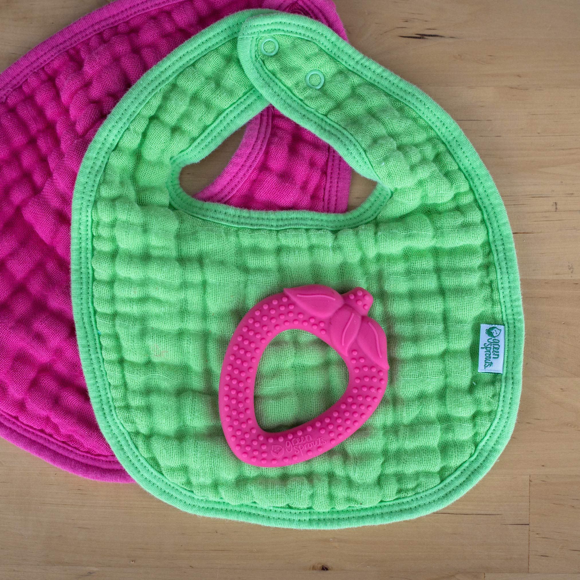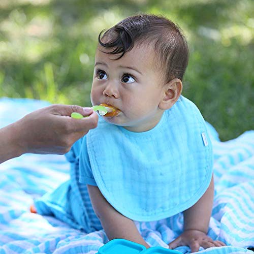 Baby’s skin feels soft and smooth next to organically grown cotton Muslin Bibs. They keep baby dry with four soft, absorbent, and breathable layers of organic cotton muslin. The adjustable snap closure keeps the bib securely in place, even if baby pulls on it. Available in bright, fun colors with striped or solid designs.