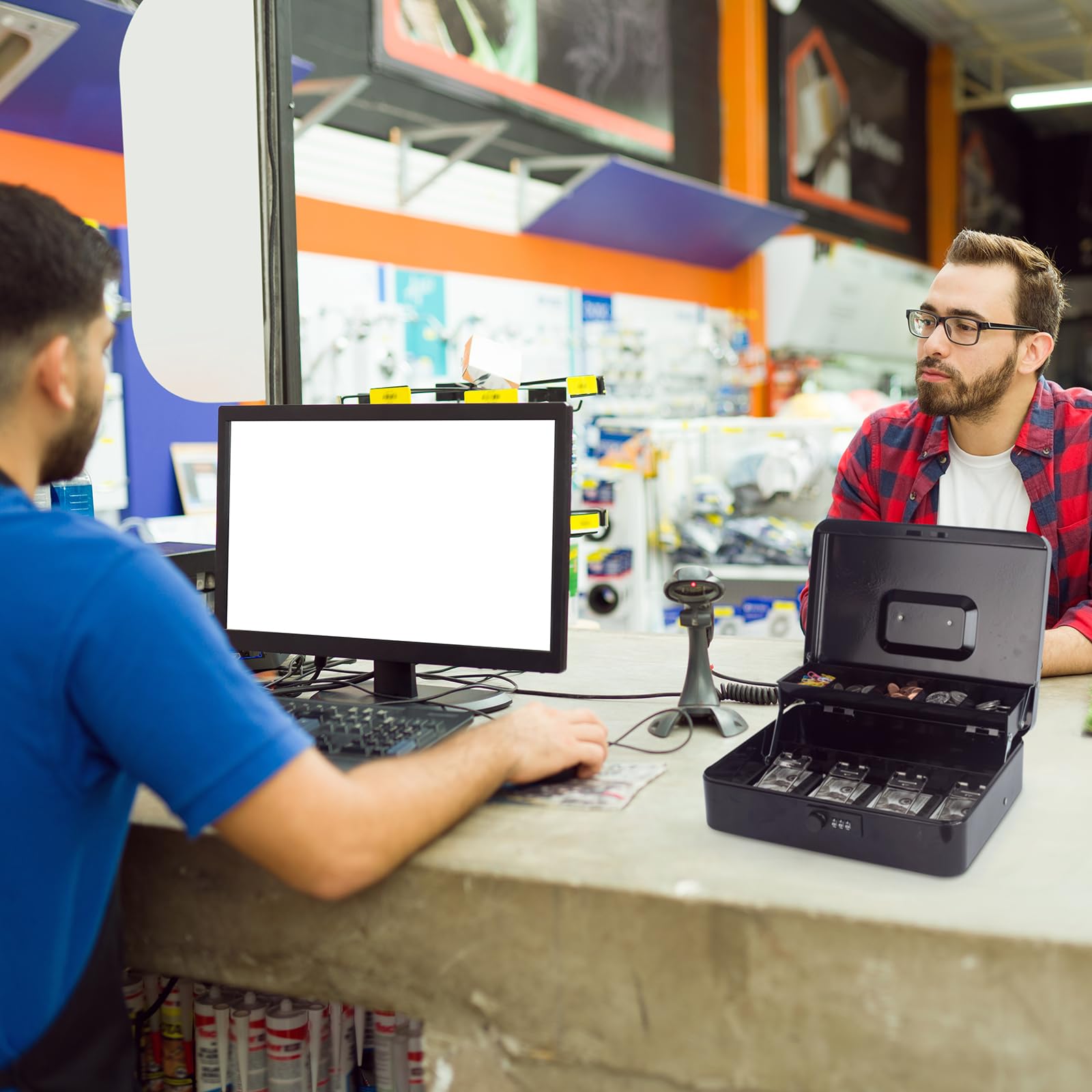 WIDE APPLICATION: The metal cash box with money tray is widely utilized in various occasions, such as homes, small businesses, events, yard sales, garage sales, stores, shops, farmers markets, fairs, and fundraiser money organizations.