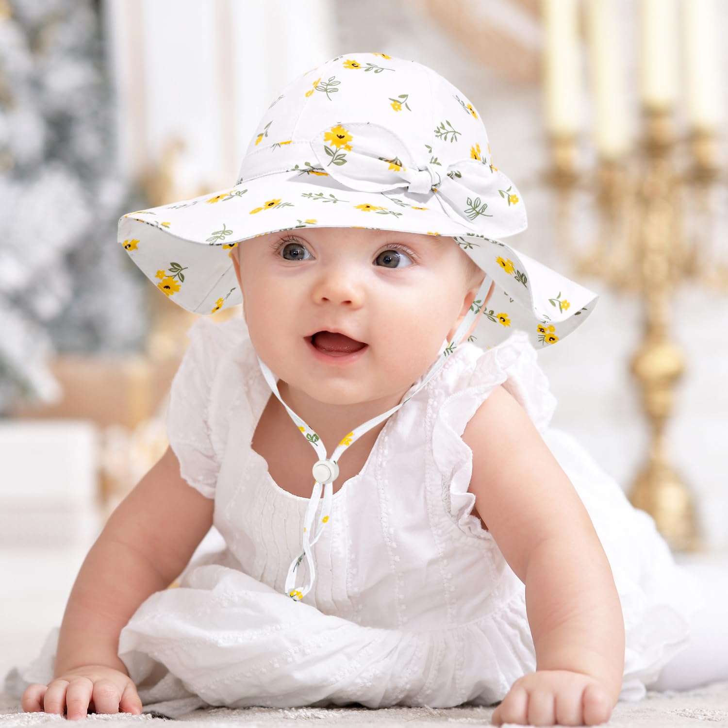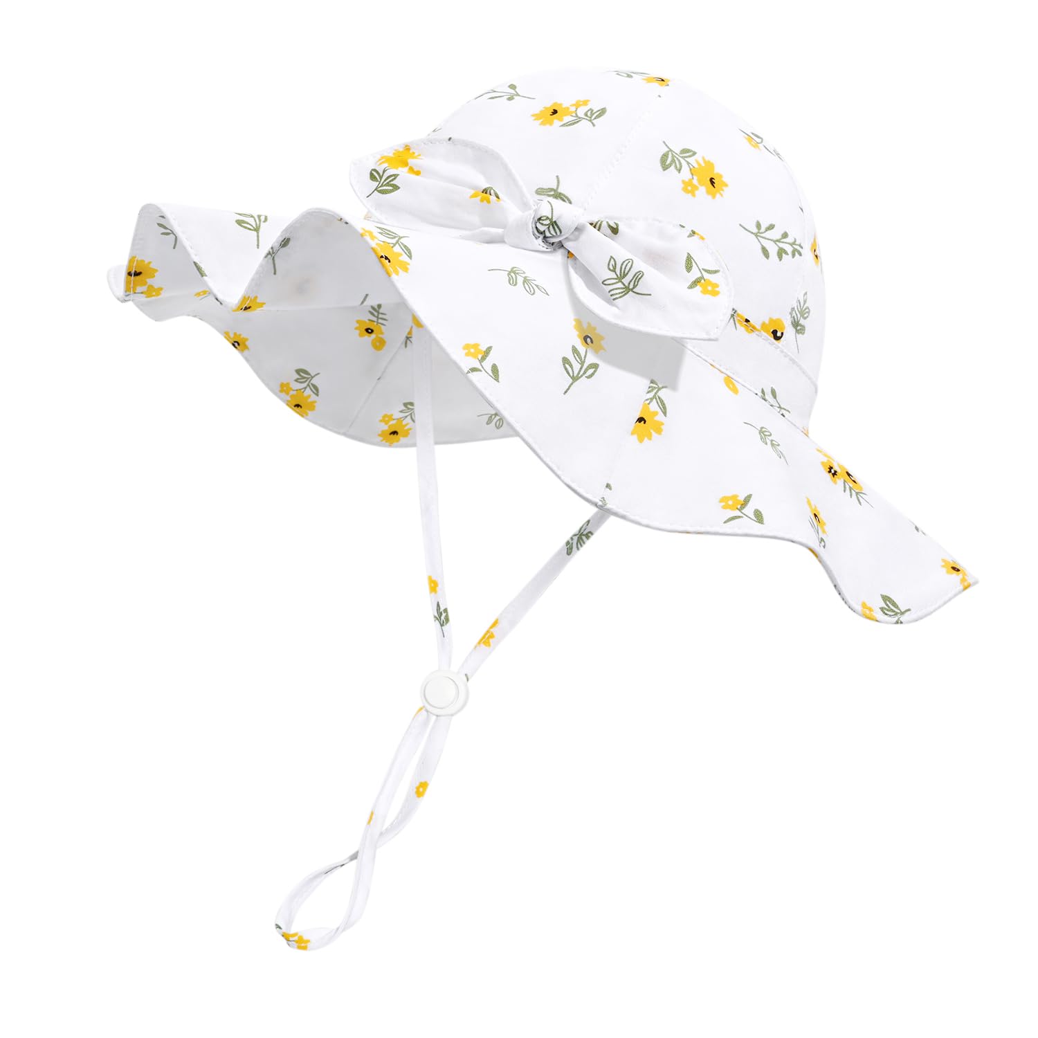 ADJUSTABLE: Outer hat drawstring offers a customized fit and adjusts as your baby grows.Chin-strap feature helps ensure that the baby sun hat remains secured on when windy.Both the head strap and the chin strap are adjustable to easily create the best.