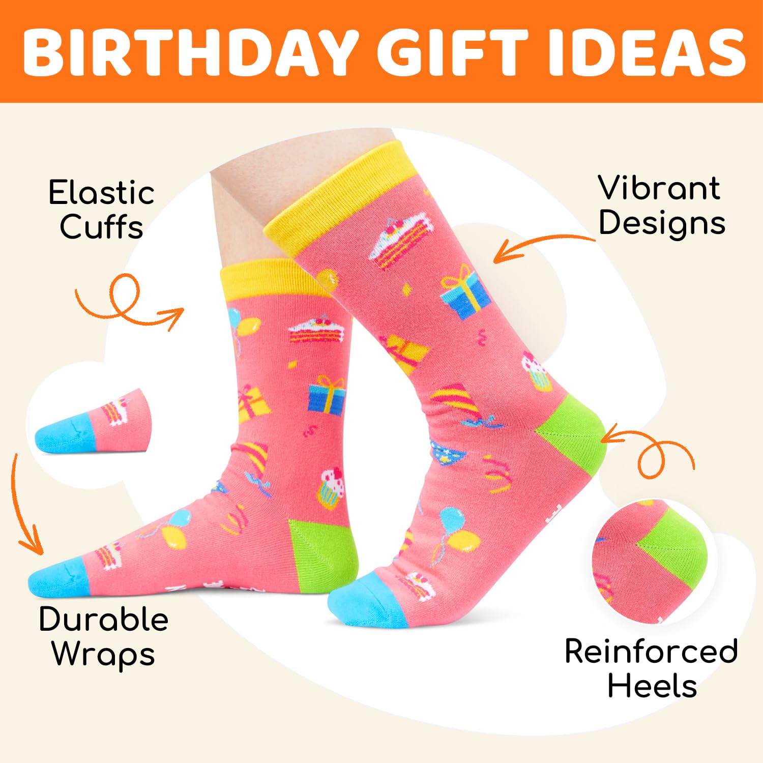 SIZE & PACKAGEοΌThese fun and crazy socks are designed for teen girls in shoe sizes 6-12 and sock sizes 8-13. Each pair comes in a special birthday gift box ready for giving.