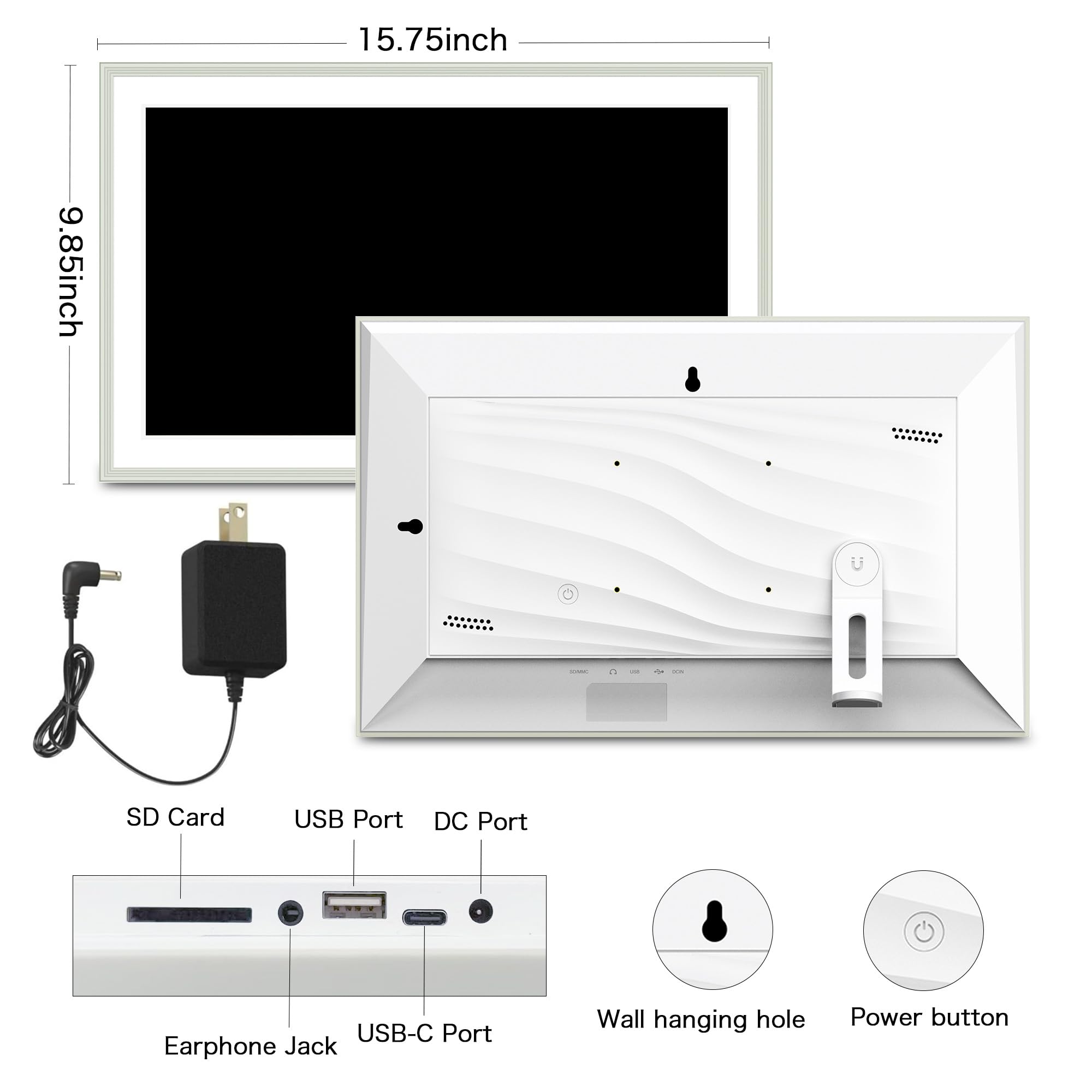 FHD IPS Touch Screen Display; Pastigio wifi photo frame equipped with a 15.6 inch digital panel with FHD 1920x1080P for vivid color and exquisite details. Border design with neutral tone complements a wide range of interior styles. Through this rotating picture frame, You can see the furry hair of your lovely pet, see the youthful freckles on smiley faces, see how every teeny tiny detail builds up your colorful life. Multiple image formats are supported, JPG/JPEG/BMP/PNG, and video format by MP4