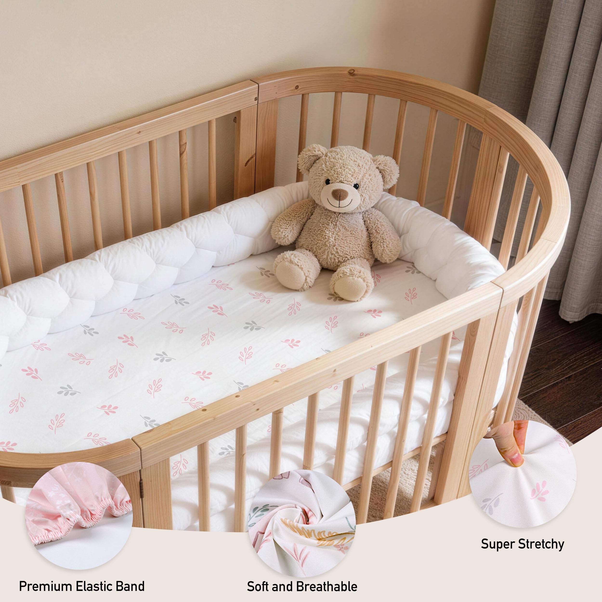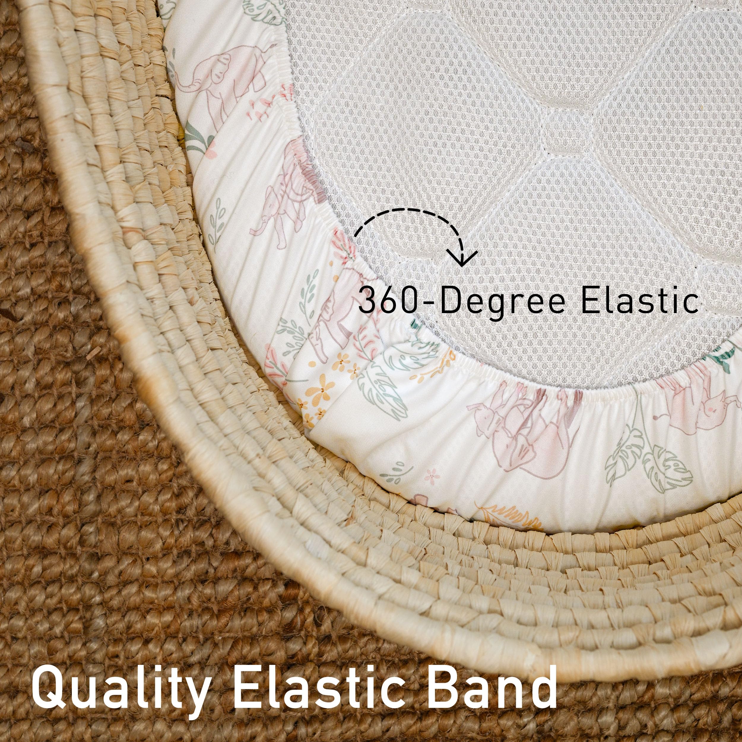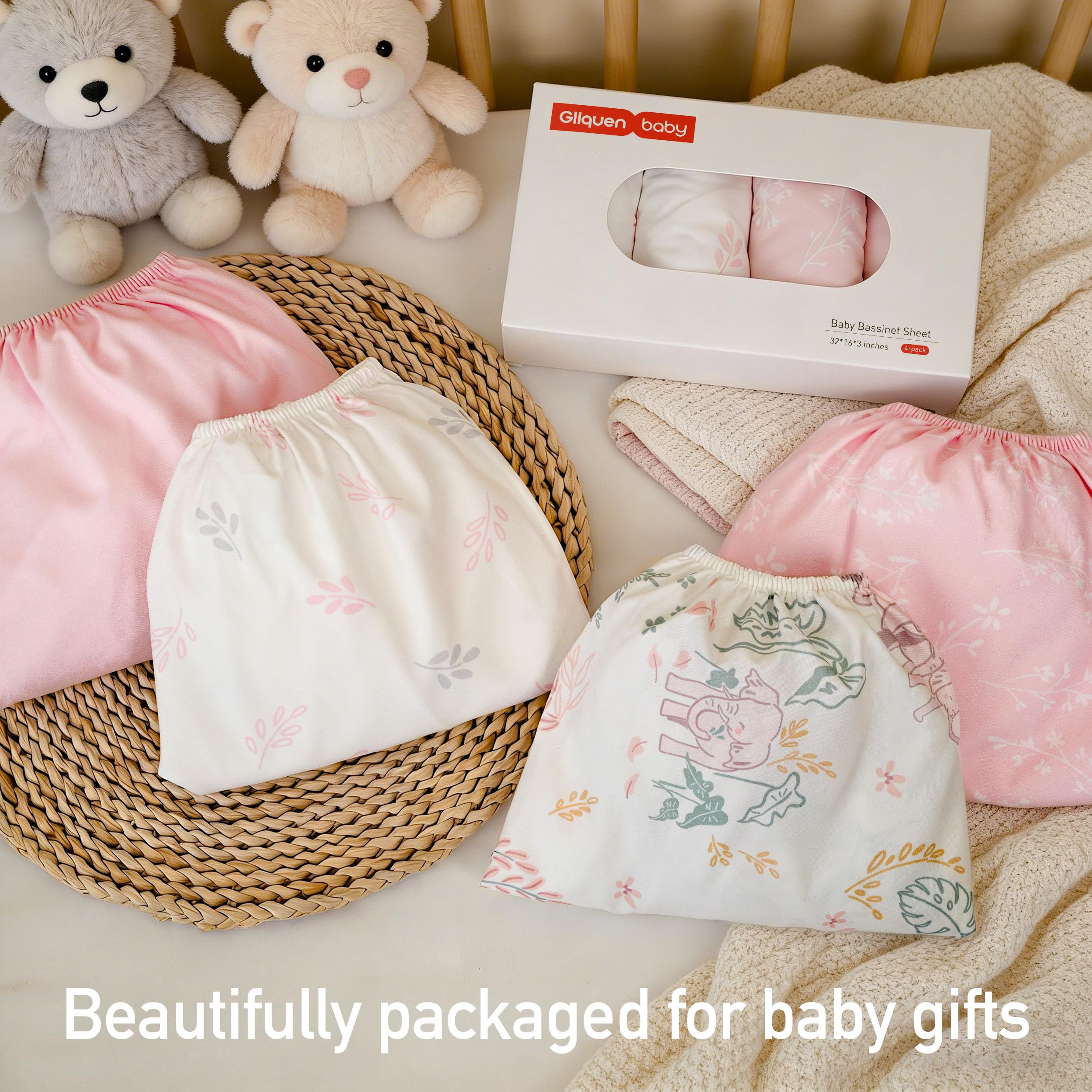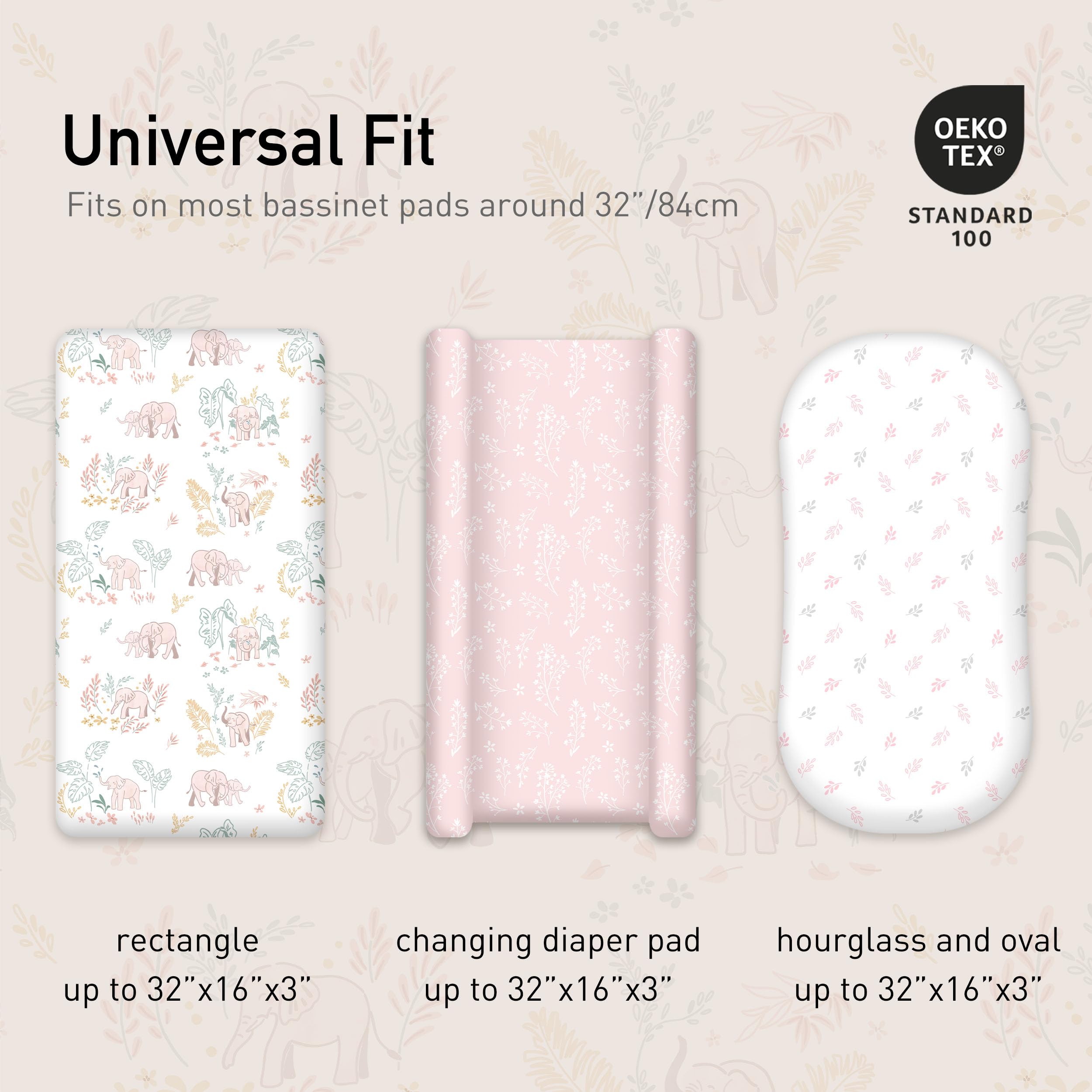 SUPER SOFT FABRIC: Our baby bedding bassinet sheets are made of soft and breathable fabric that best fits the standard bassinet crib. The elastic band surrounds the mattress, so mothers will not worry that it will slip away, creating a comfortable and stable sleeping space for the baby. Rest assured, every product meets the OEKO-TEX Standard 100 and is safe for babies