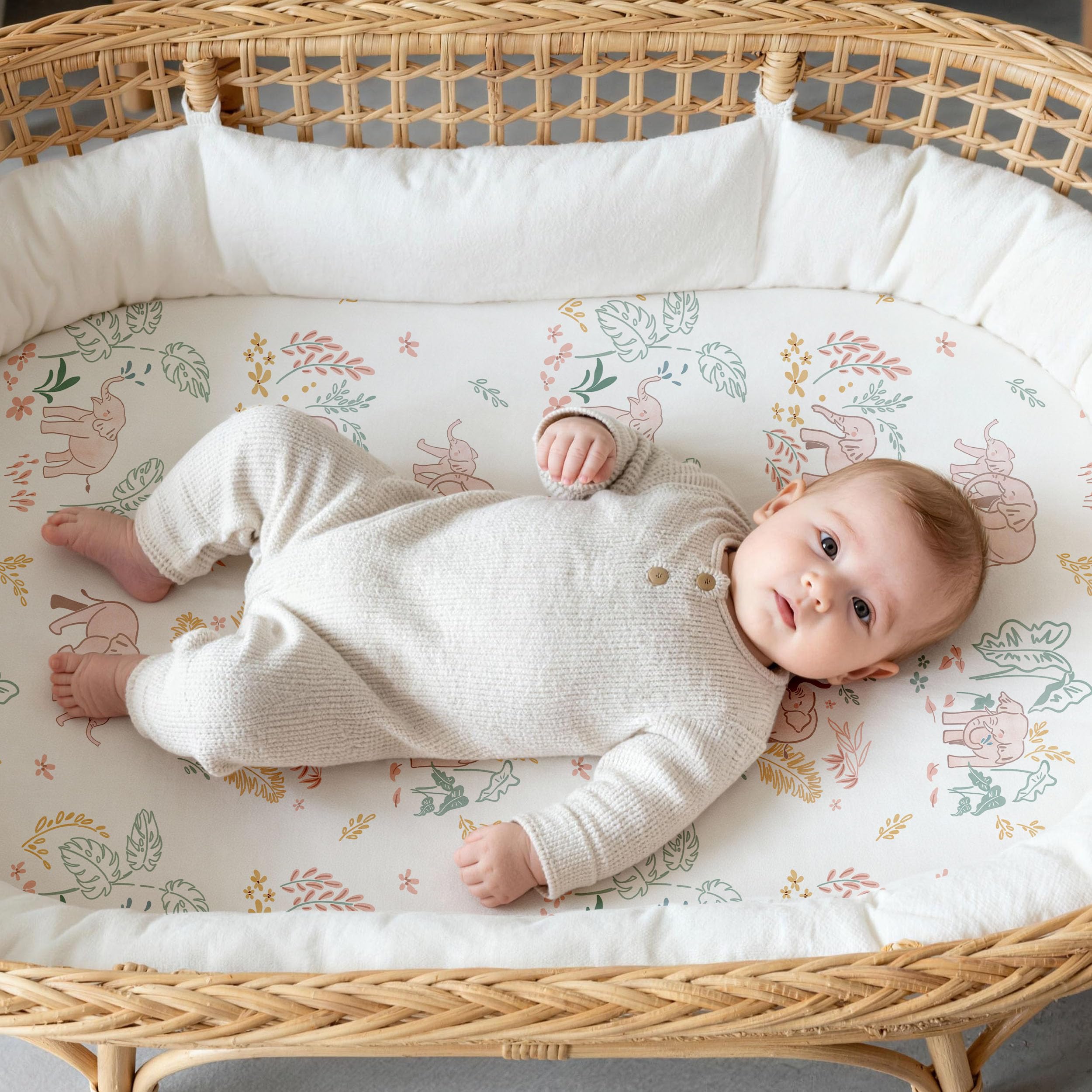 SUPER LONG LASTING: We have carefully crafted the craftsmanship and checked every bassinet mattress to ensure you buy the best crib sheets cradle mattress. Made of high-quality fabric, our bassinet sheets for baby boys do not wrinkle, unravel, roughen, scrunch, warp, shrink, develop holes, or lose their stretch after washing. Machine washable, the fabric stays new after every wash