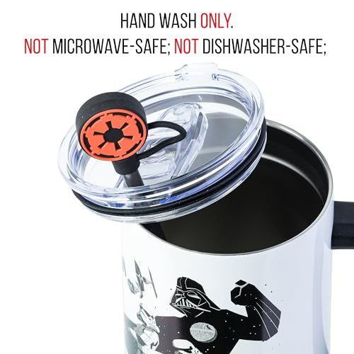 GALACTIC FEATURES: Double-wall insulation, splash-resistant lid, and ergonomic handle bring together Sith strength and Star Wars style in one ultimate drinkware vessel.