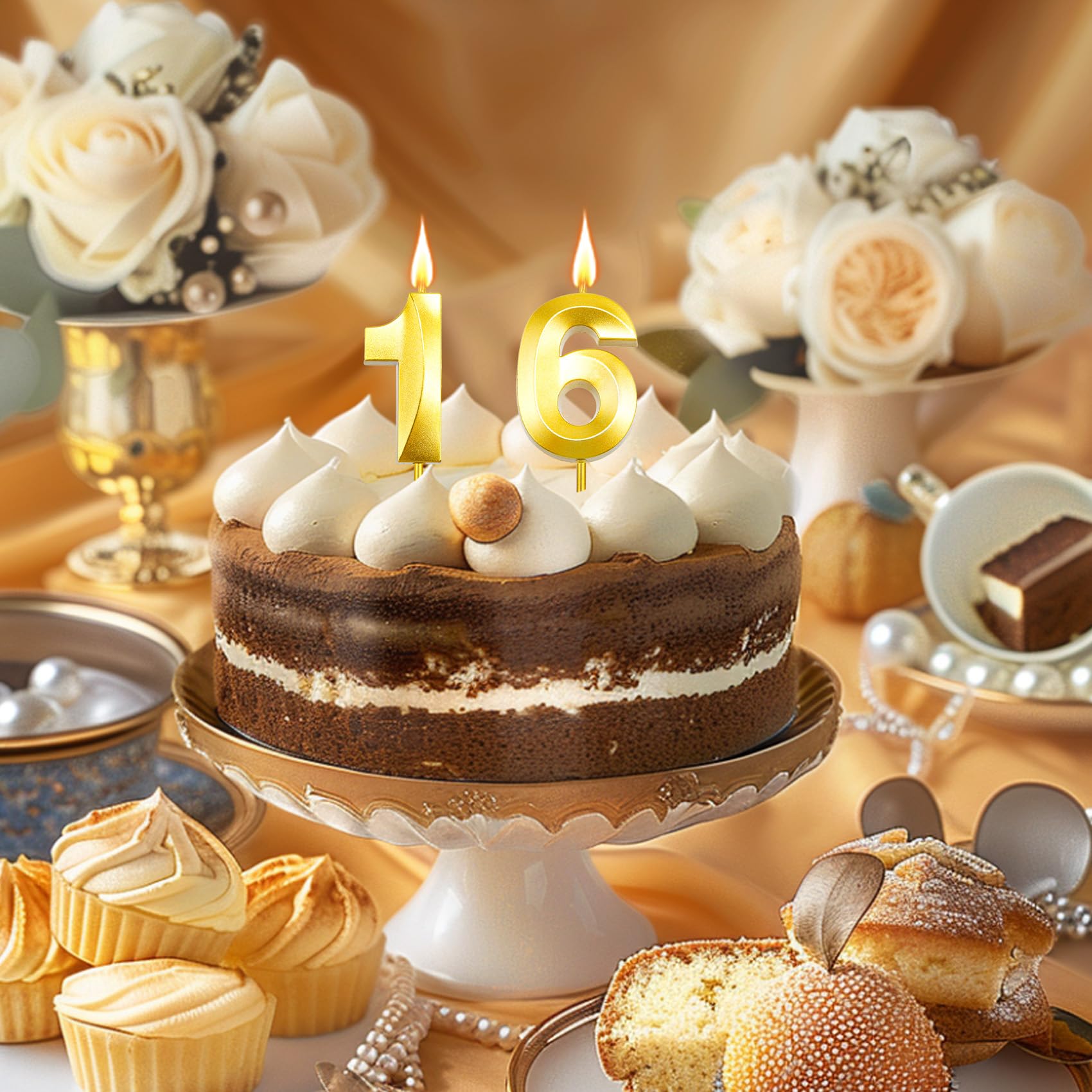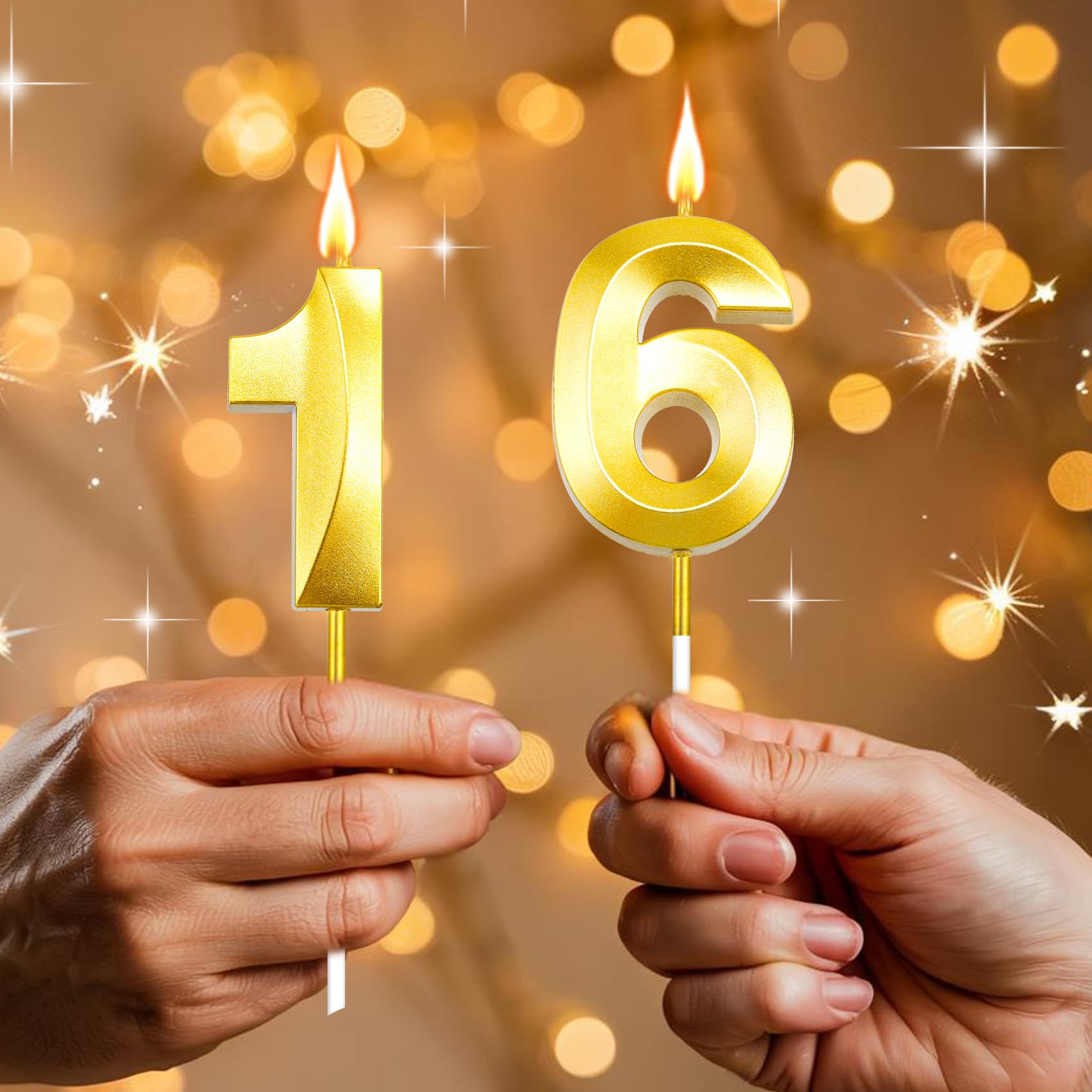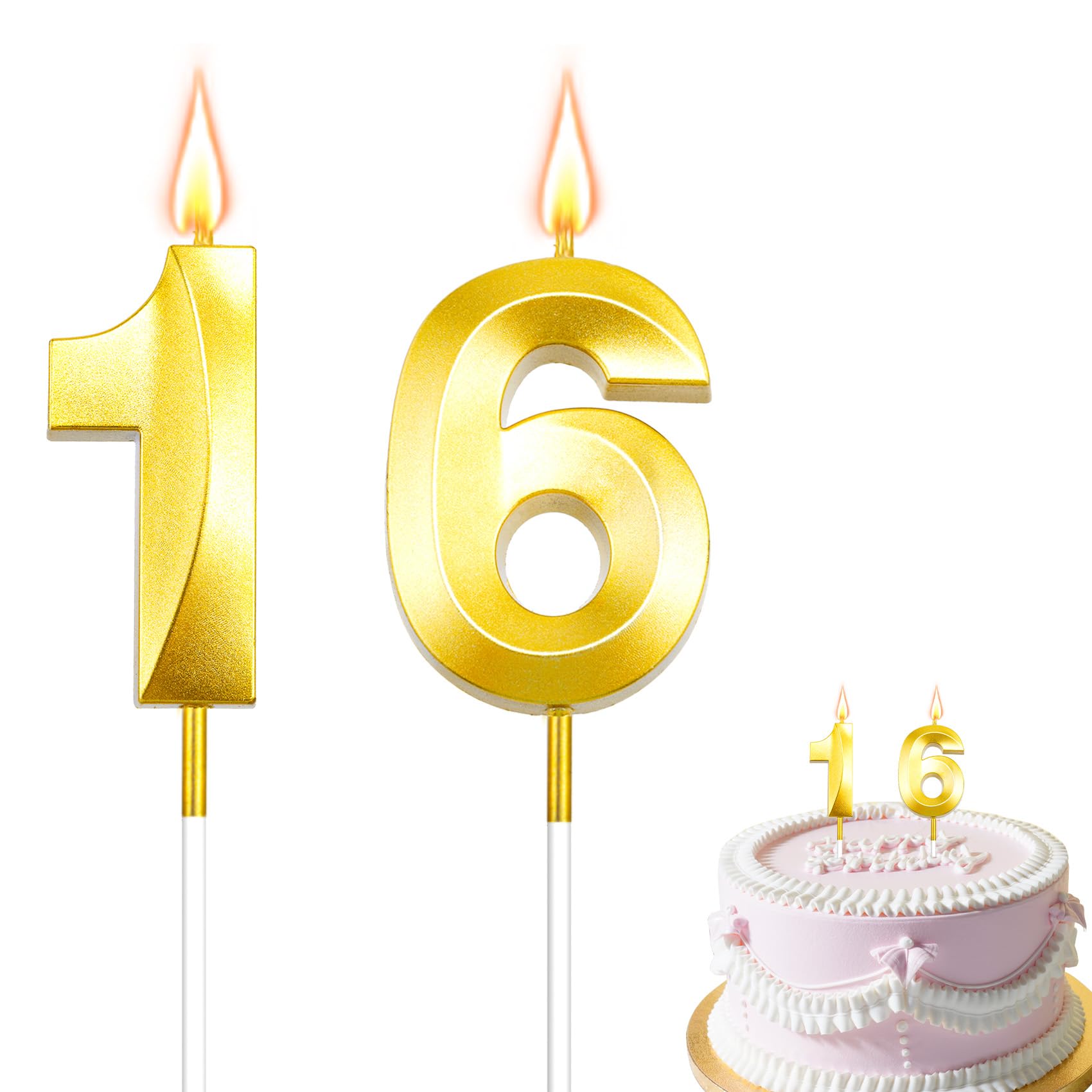 Package Include: You will receive 1 pcs gold number 16 birthday candle. Each numeral candle is packaged in a separate tight plastic box, which is more protective can effectively prevent the candle from being crushed, can meet your birthday party needs. Exquisite and beautiful appearance, you can use it decorate your birthday party