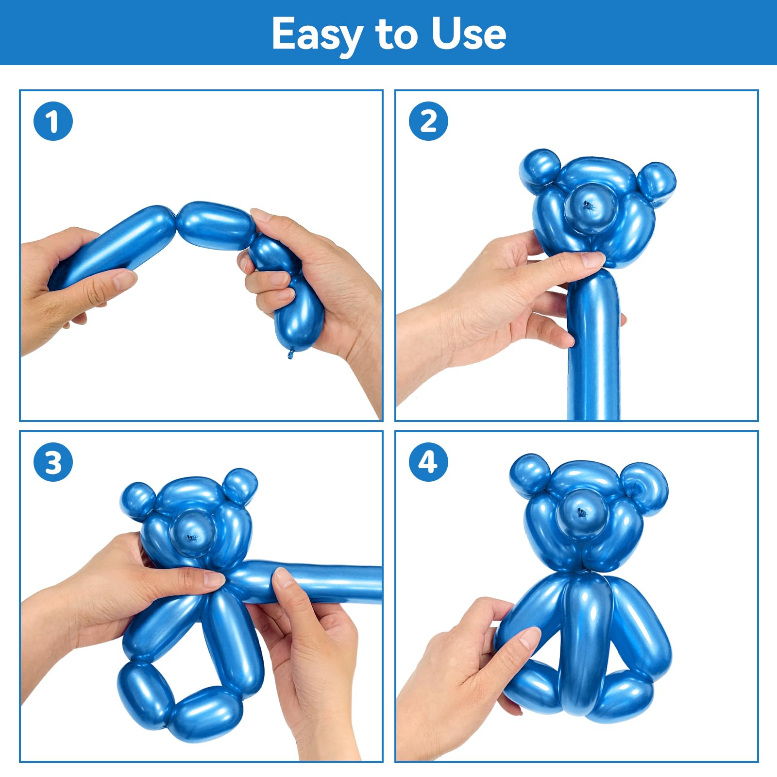 BALLOON ANIMAL BALLOONS: The length of the twisty balloon is 12.5 inches, and it can be inflated to 47-53 inches. It can be easily inflated with balloon pump or an electric pump.