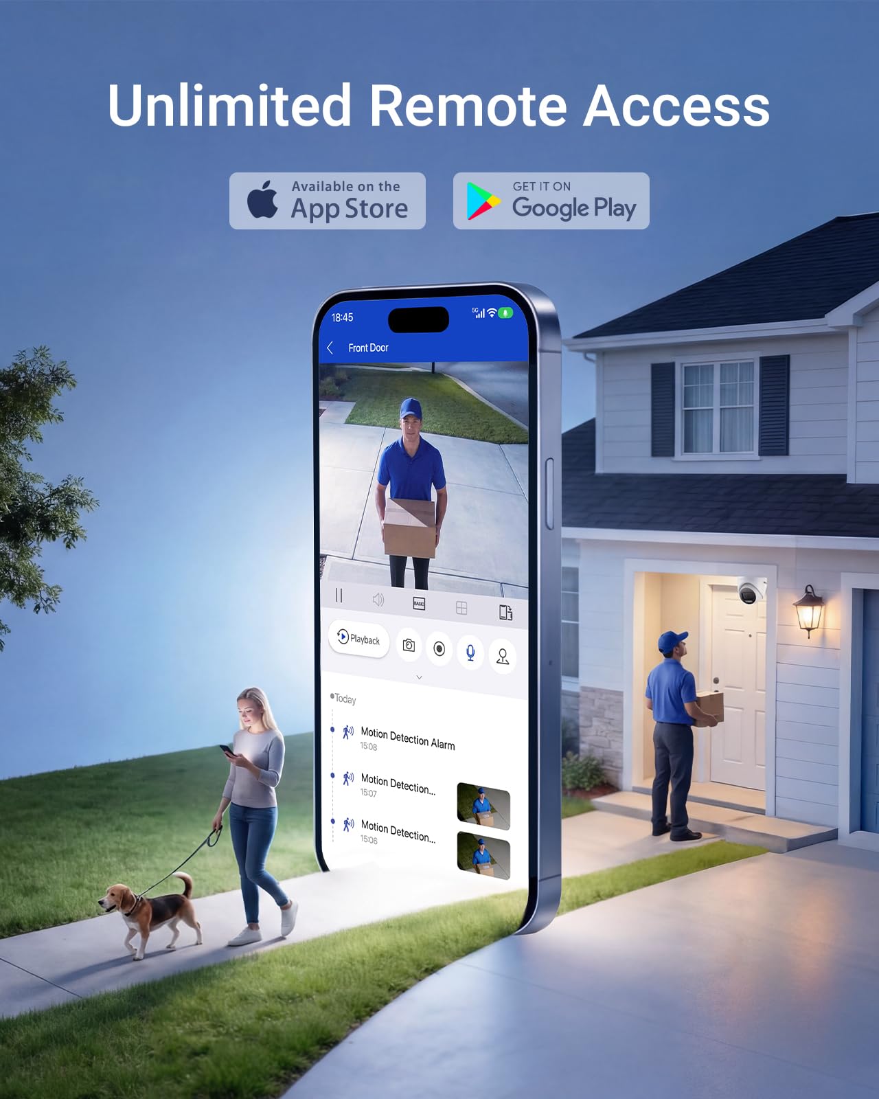 All-Around Certifications & Secure App – Every device, including the DVR & cameras, has passed severe testing by authorities, like UL, CE, HDMI, etc. ANNKE App conforms to GDPR, ensuring the video stream is secure in data transferring & downloading.