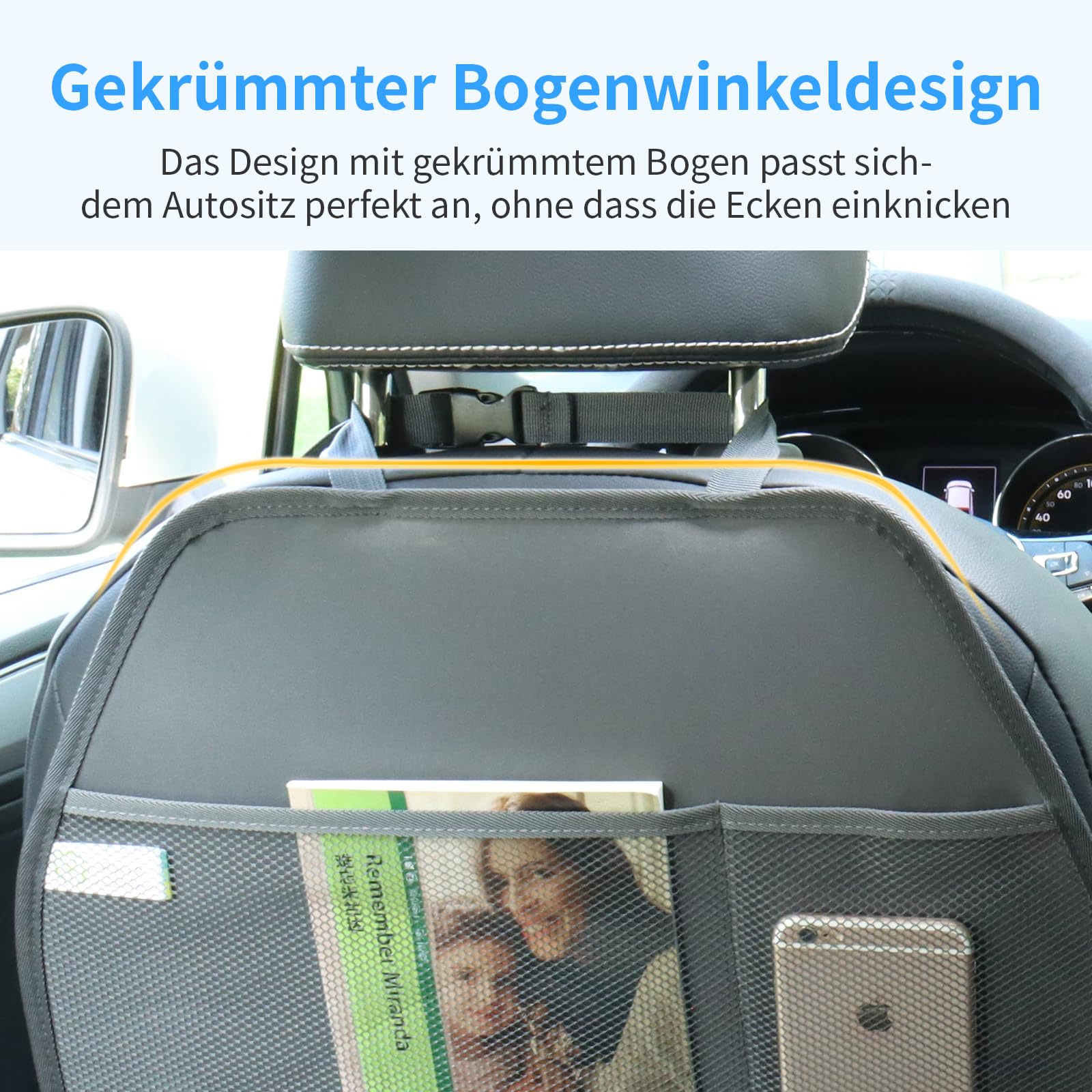 Triple Fastening:Compared with other auto seat covers that have only 2 straps to fix, our car seat back cover equips with 3 straps from the top to bottom. And the middle elastic strap helps secure the Viaviat protector kick mats to the seat and keeps it from gaping.