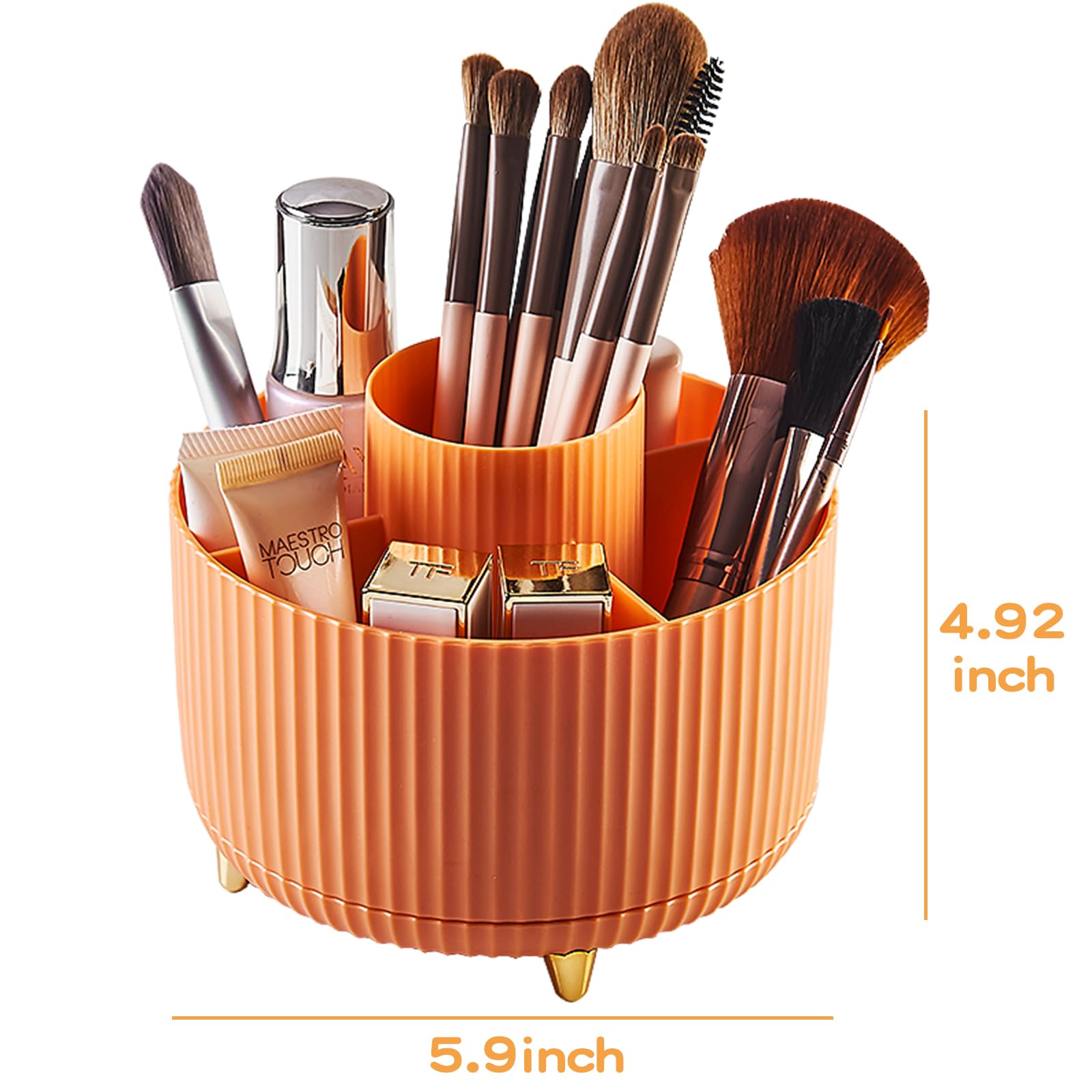 360° Rotate Makeup Brush Holder Organizer, Makeup Organizers Countertop, Makeup organization and Skincare Storage for Vanity, Desktop, Bathroom (Orange)